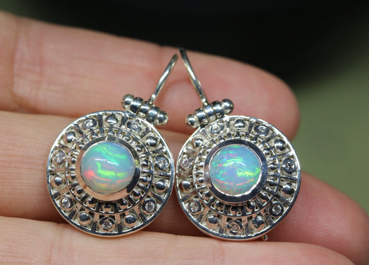 Natural Opal Dangle Earrings - Sterling Silver #301