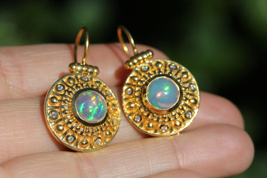Natural Opal Dangle Earrings 24k Gold Plated Sterling Silver #296