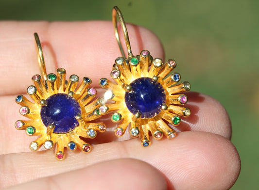 Blue Sapphire Dangle Earrings 24k Gold Plated Sterling Silver #297