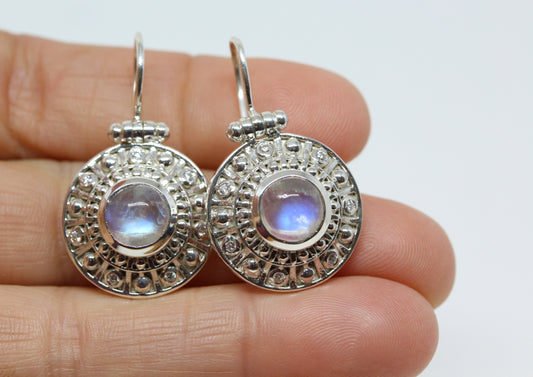 Moonstone Medallion Dangle Earrings Sterling Silver #308
