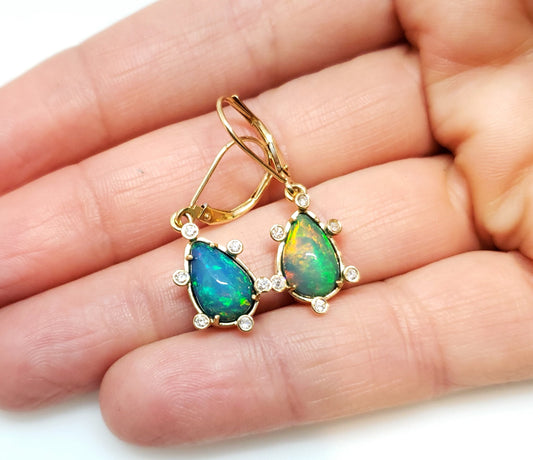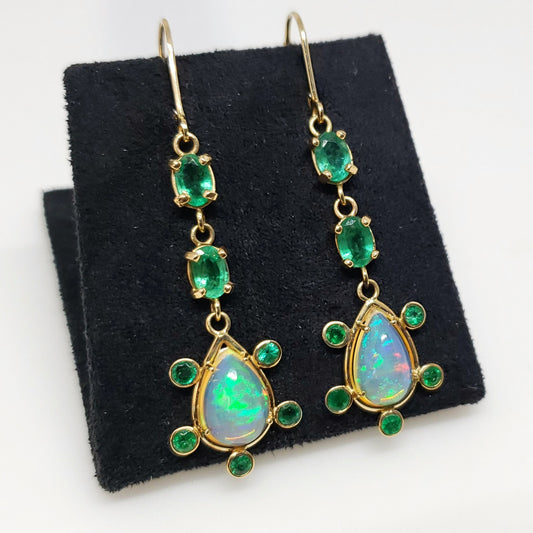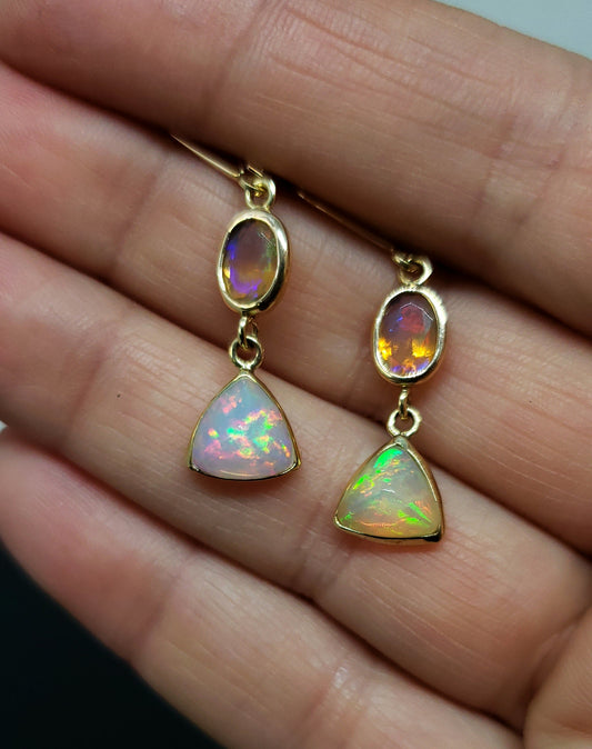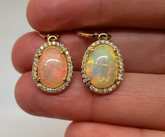Opal Round Dangle Earrings- 24k Gold Plated - Joy#198