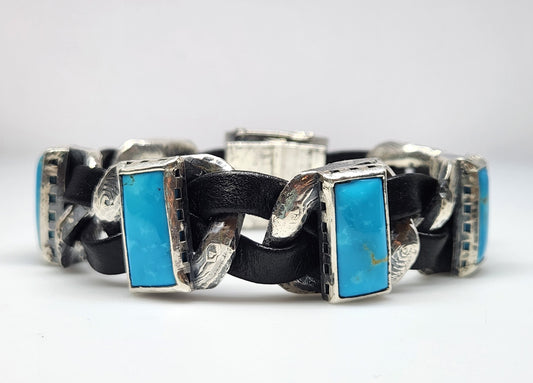 Made To Order Rustic Silver & Leather Turquoise Gemstone Link Bracelet