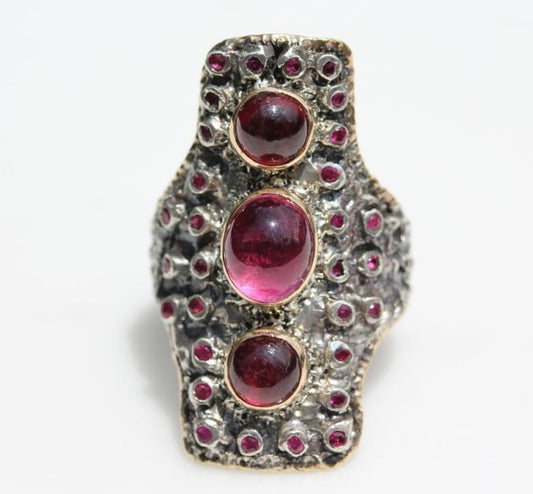 MADE TO ORDER - 18k Gold Crown Ring Red Sapphire Gemstone Band