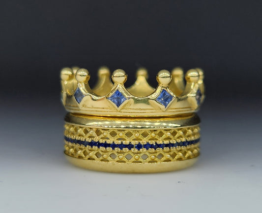 MADE TO ORDER - 18k Gold Crown Ring Blue Sapphire Gemstone Band