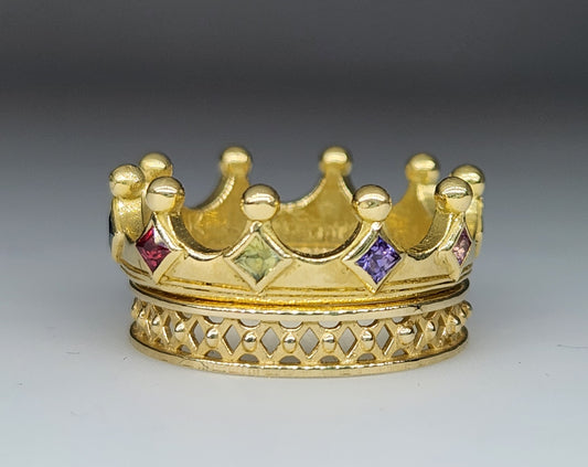 MADE TO ORDER - 18k Gold Crown Ring Multi-Color Sapphire Gemstone Band