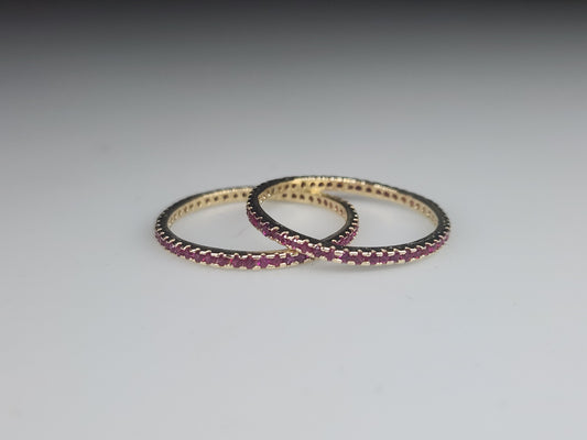 Custom Order - 14k Yellow Gold Ruby Eternity Band Ring Set of 2