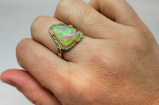 Opal & Tsavorite Garnet Ring 14k Gold #117