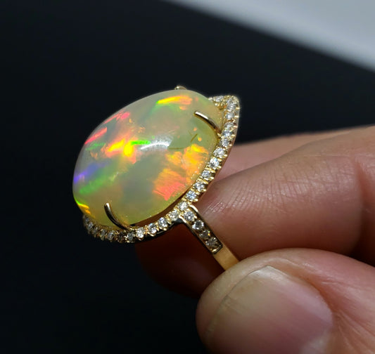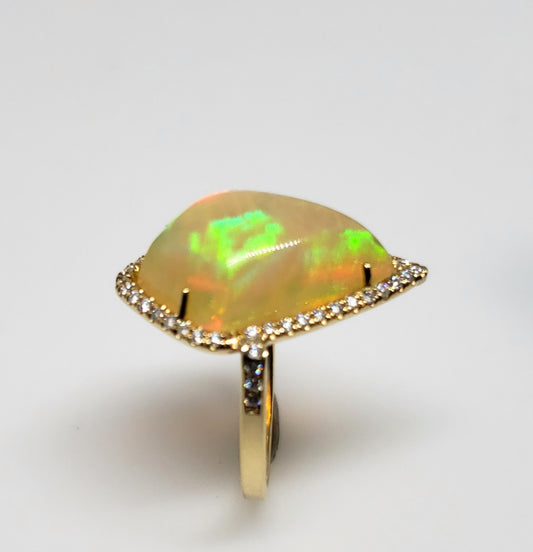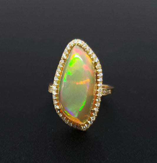 Ultra-Bright Opal & Diamond Ring 14k Gold #124