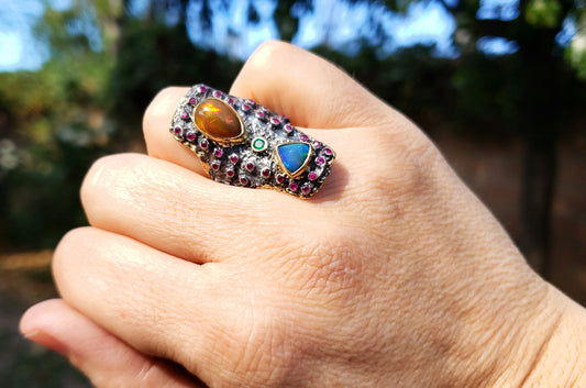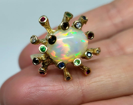 Opal Ring 14 Karat Gold Statement Jewelry #134