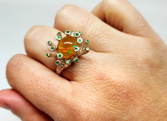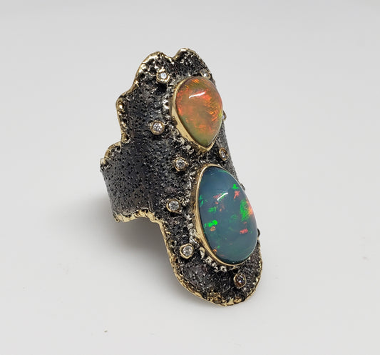 Fire pal & Diamond Ring Silver & 14k Gold
