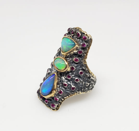 Opal & Ruby Ring Silver & 14k Gold #212