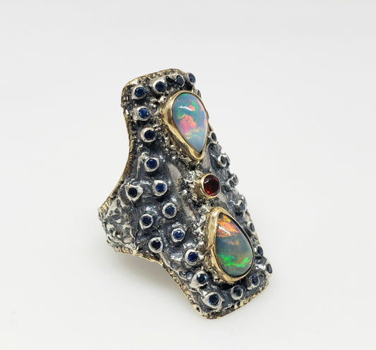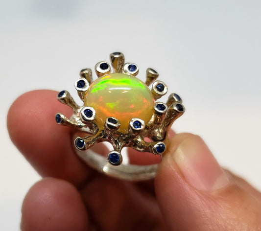 Opal & Sapphire Ring Silver & 14k Gold