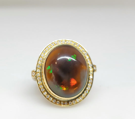 Opal & Diamond Ring Silver & 14k Gold