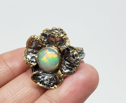 Opal & Diamond Ring 14k Yellow Gold - Size 7.5 #1346