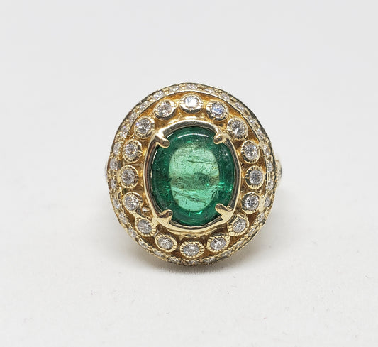 Emerald & Diamond Ring 14 Gold - Size 5.75