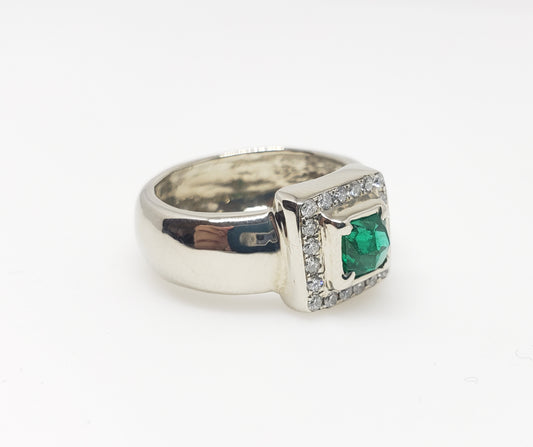Emerald & Diamond Ring 14 White Gold - Size 7