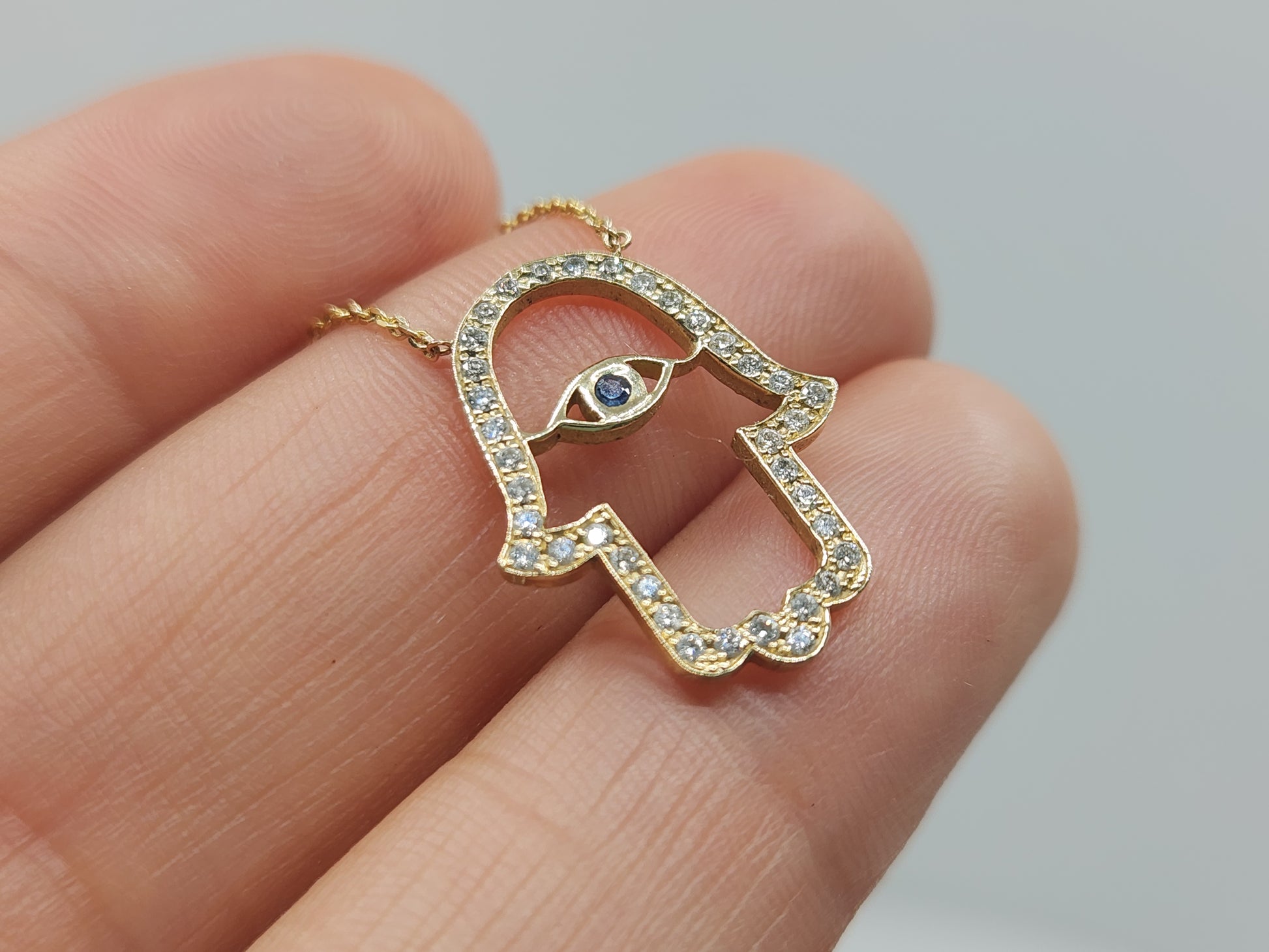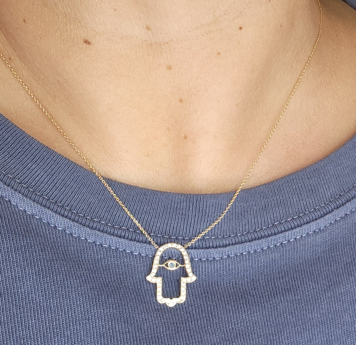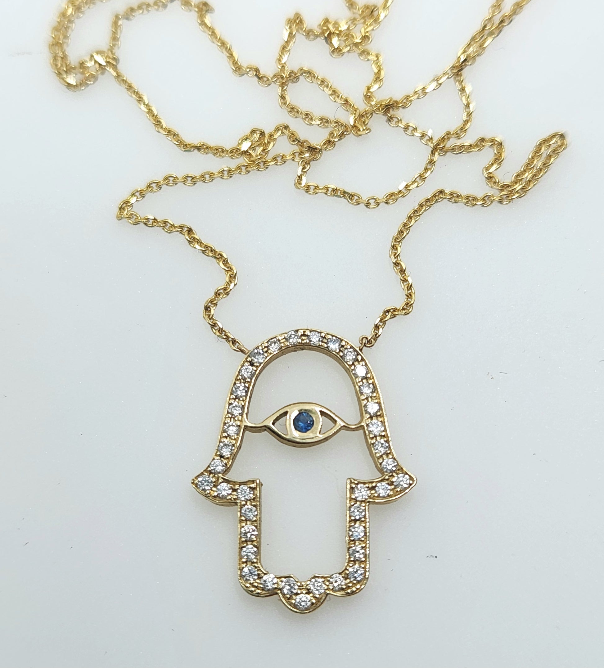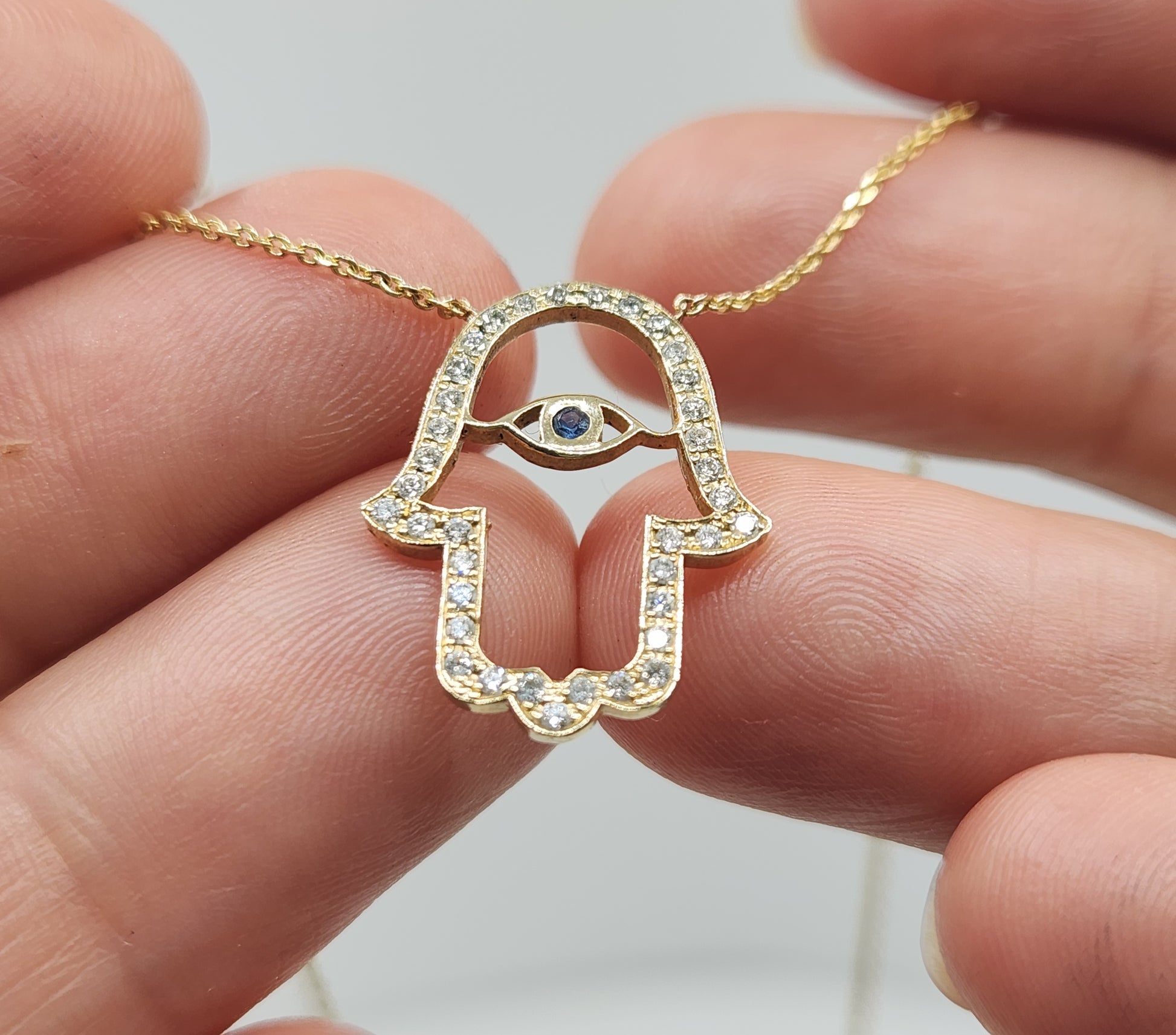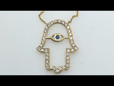 14k Gold Hamsa Evil Eye Diamond Pendant #485