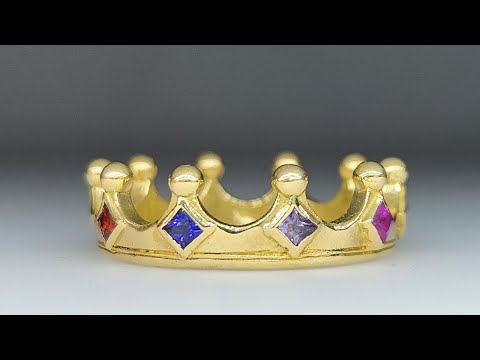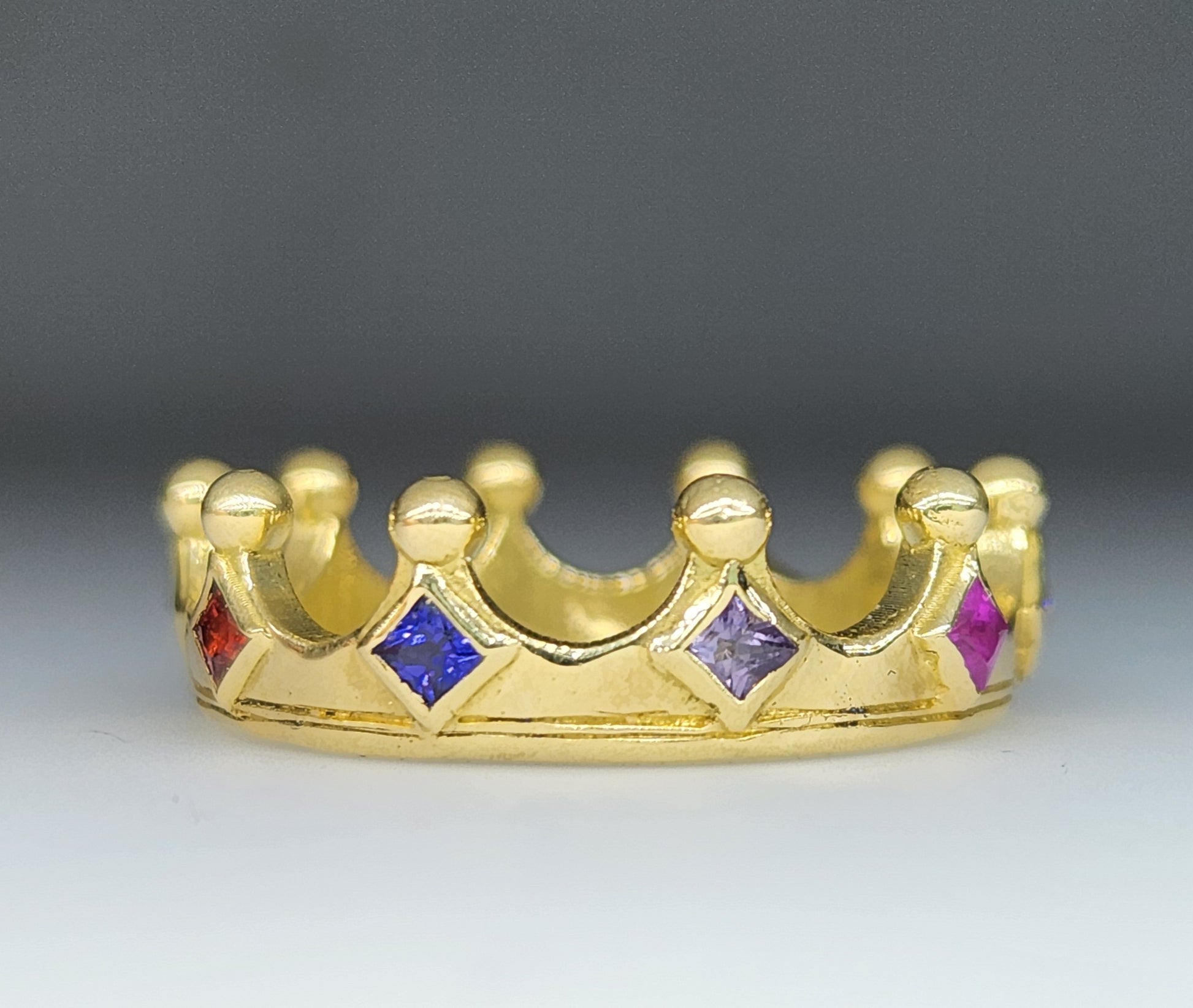 MADE TO ORDER - 18k Gold Crown Ring Multi-Color Sapphire Gemstone Band