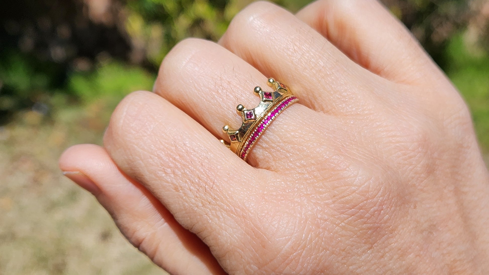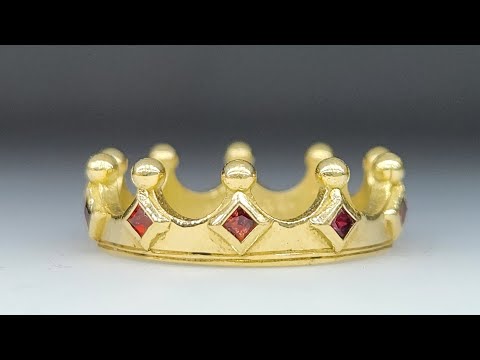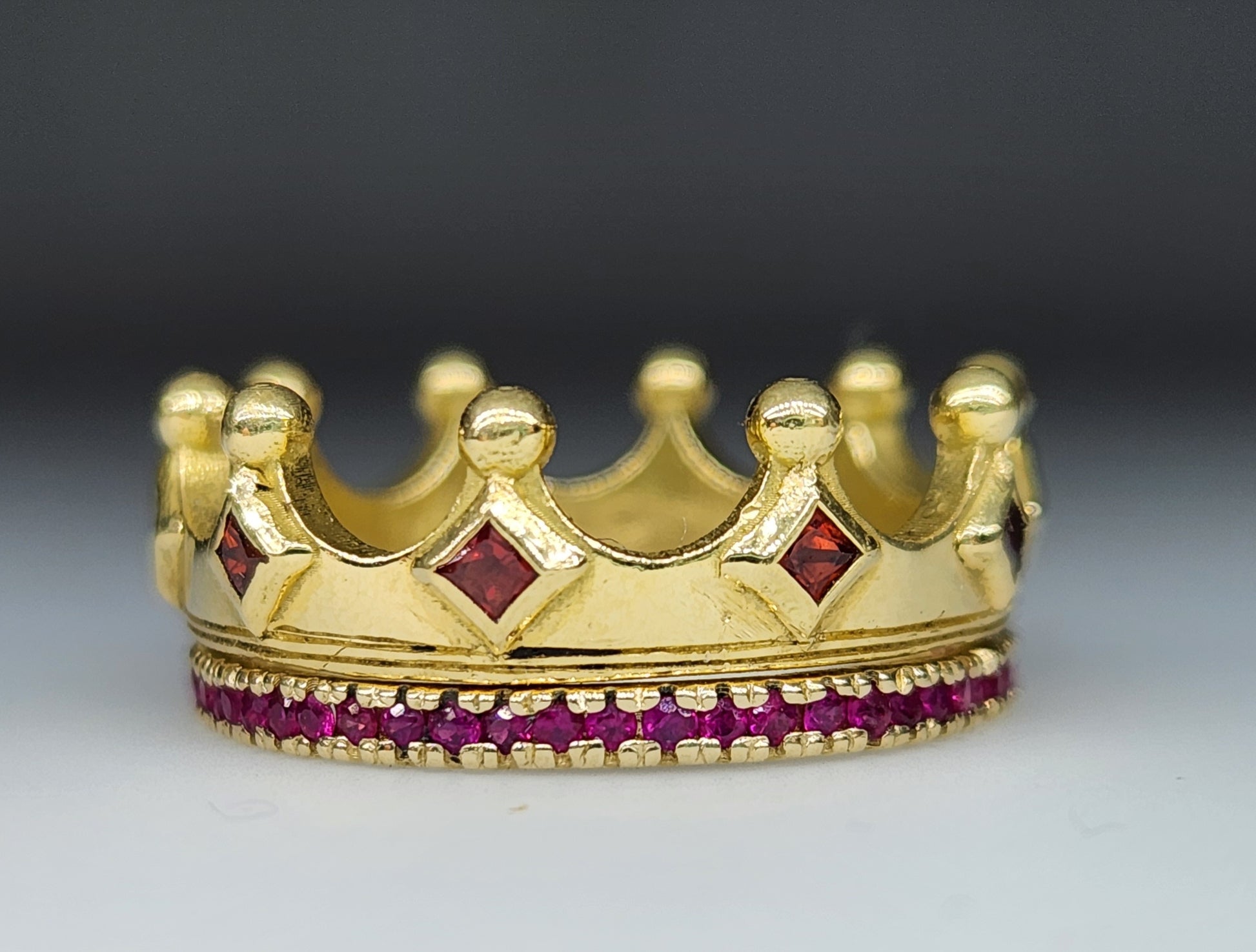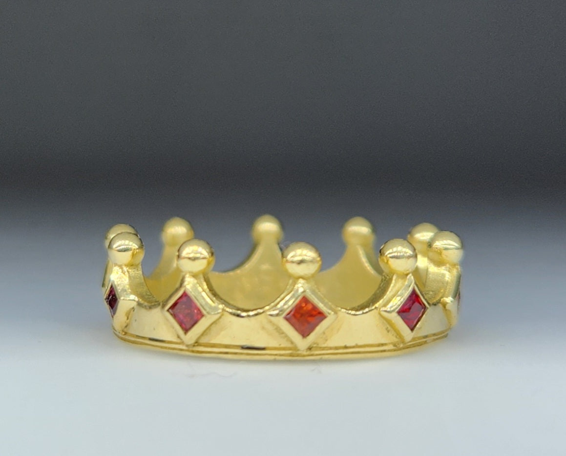 MADE TO ORDER - 18k Gold Crown Ring Red Sapphire Gemstone Band