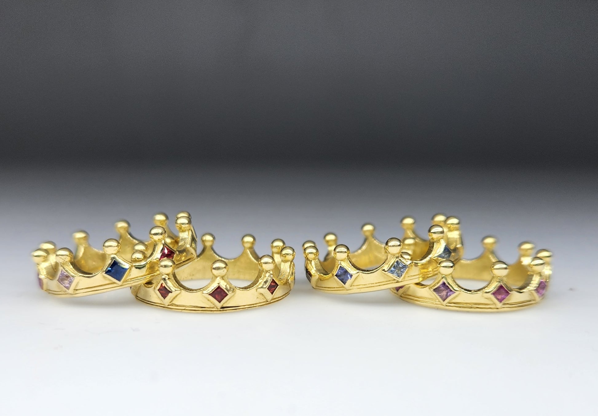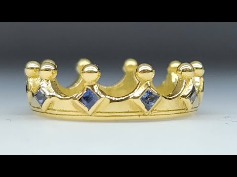 MADE TO ORDER - 18k Gold Crown Ring Blue Sapphire Gemstone Band