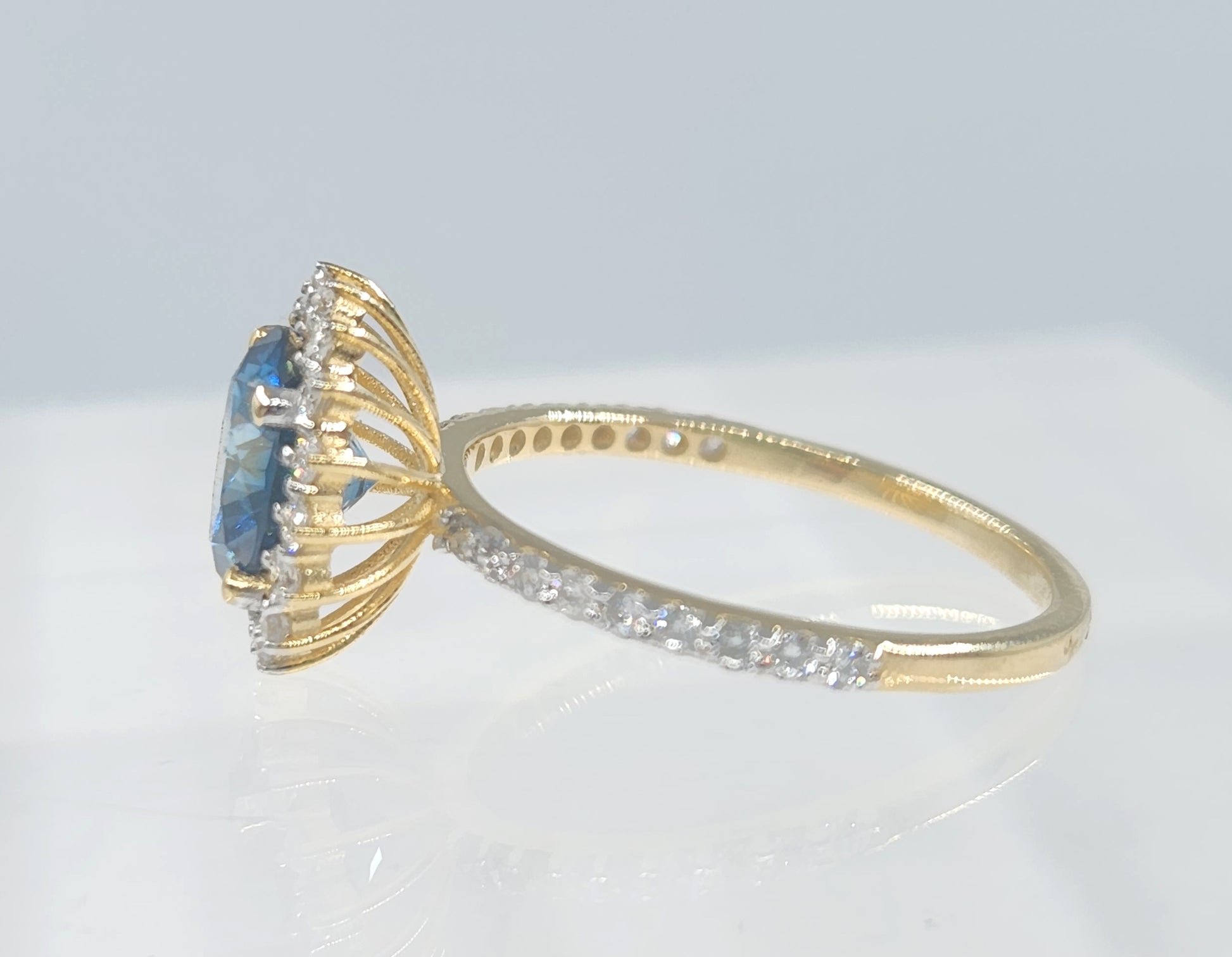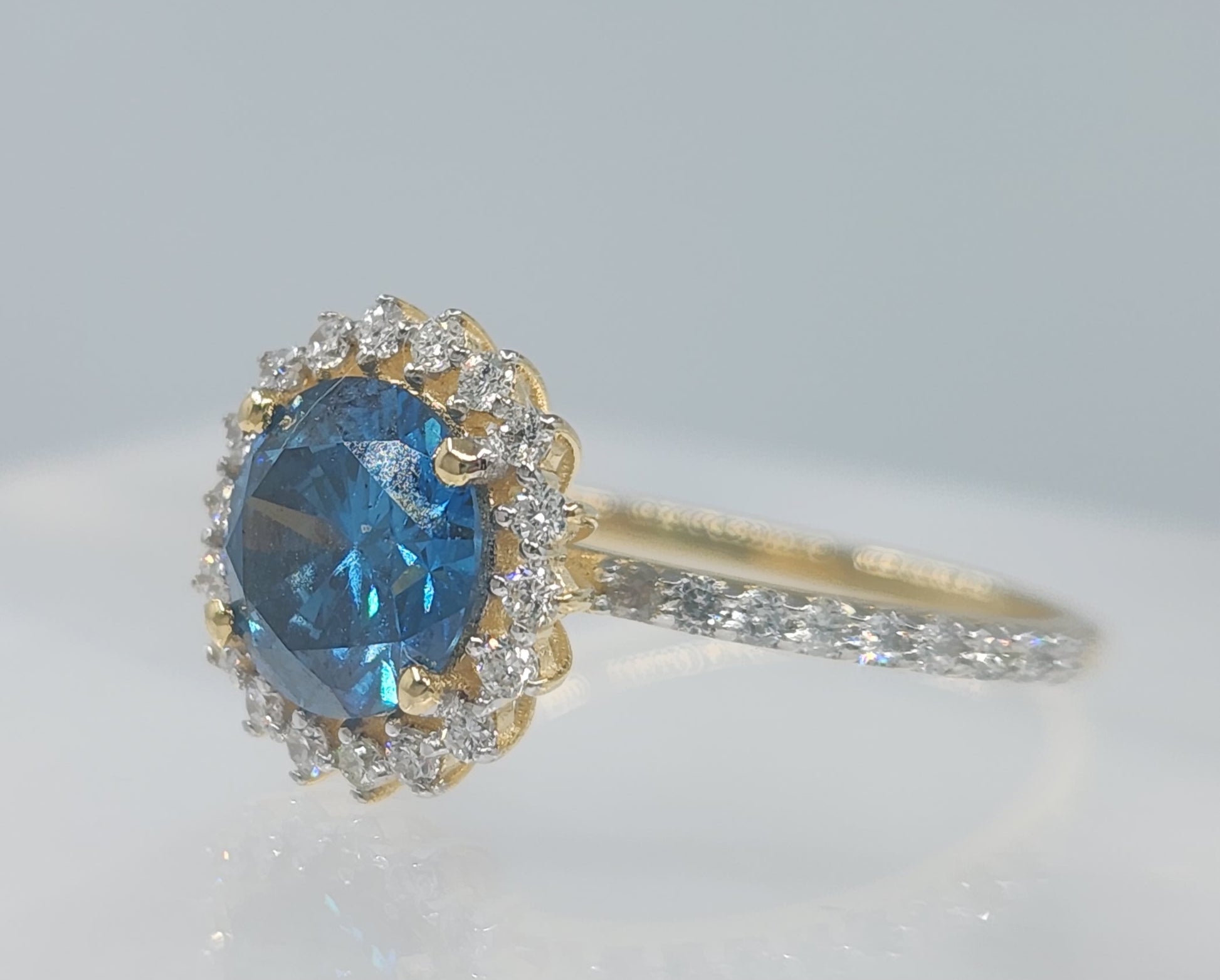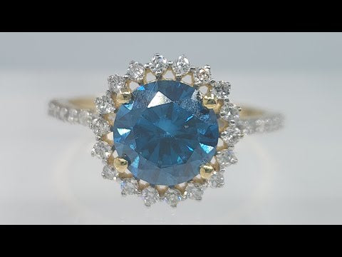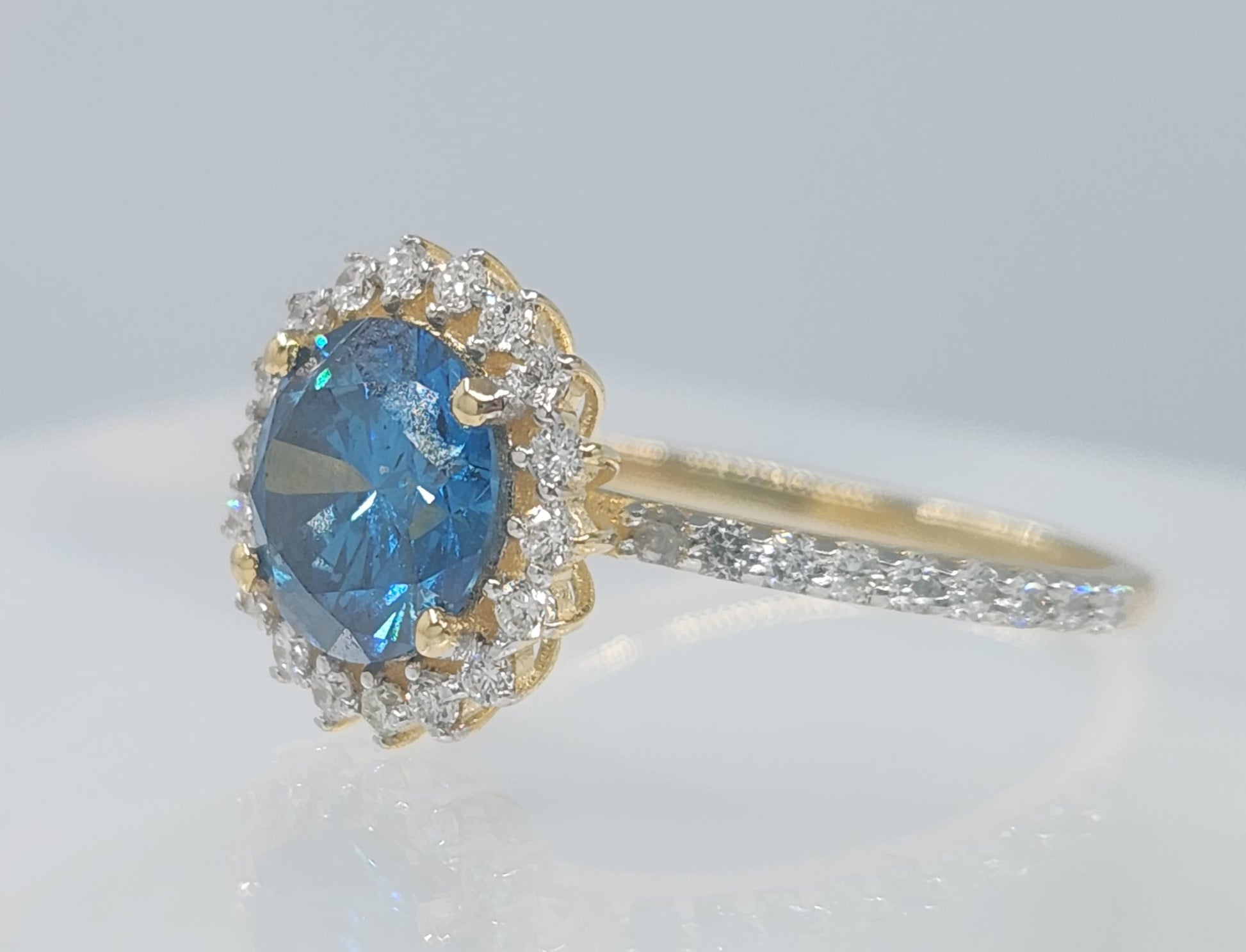 Center Stones: 6mm CVD Lab Grown blue diamond, 1.22 carat