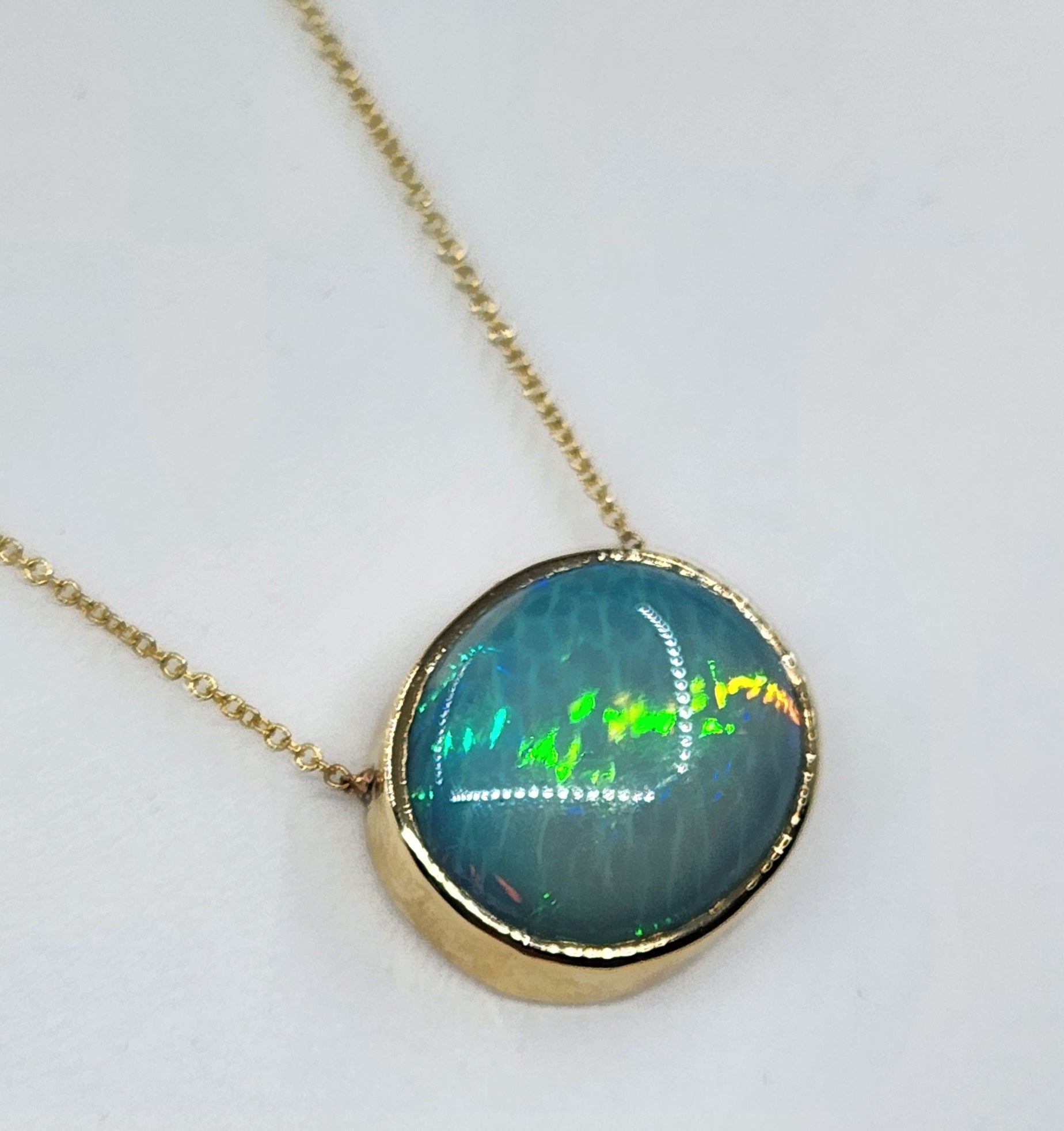 Blue Opal Pendant 14k Yellow Gold Split Chain Necklace #470