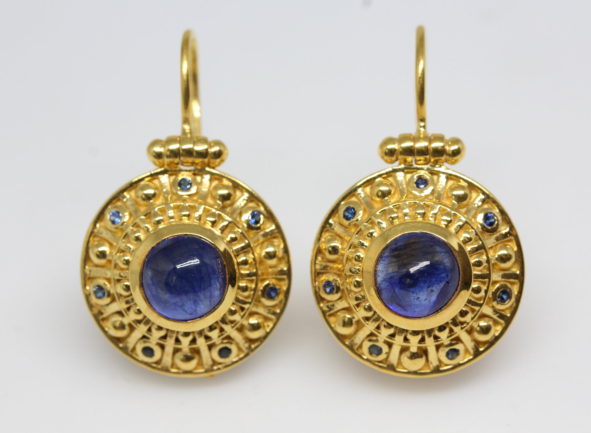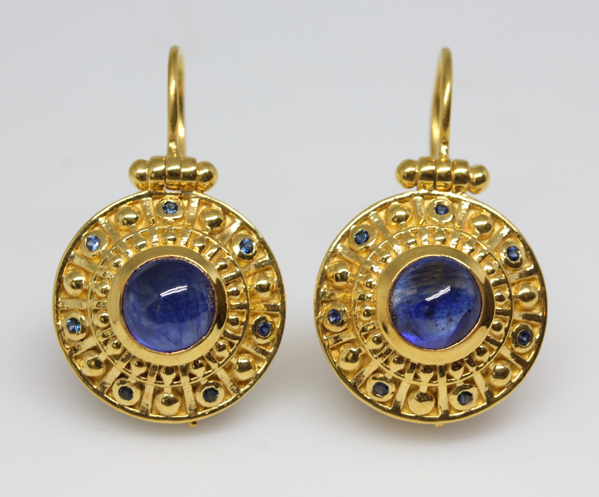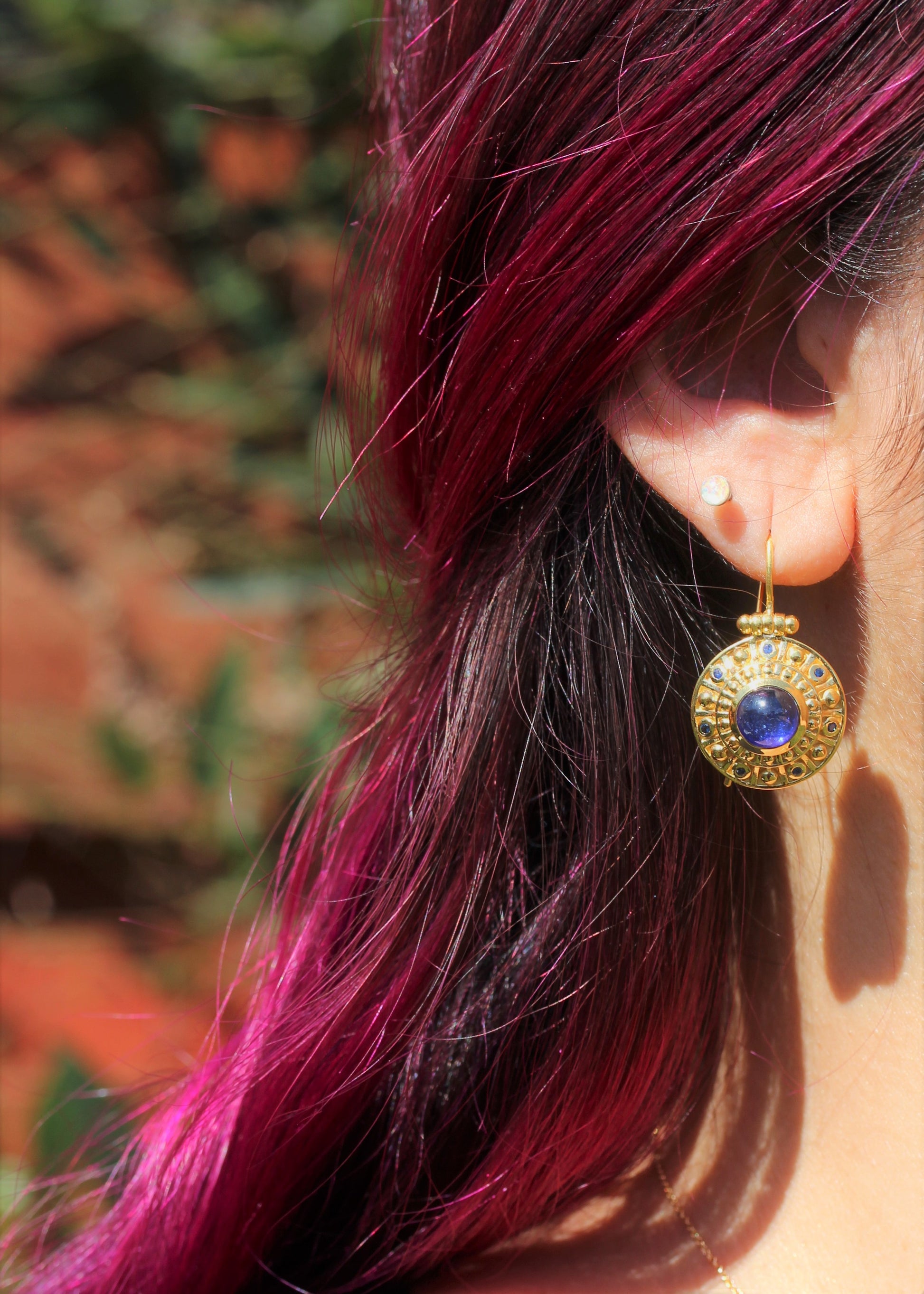 Blue Sapphire Dangle Earrings 24k Gold Plated Sterling Silver #297