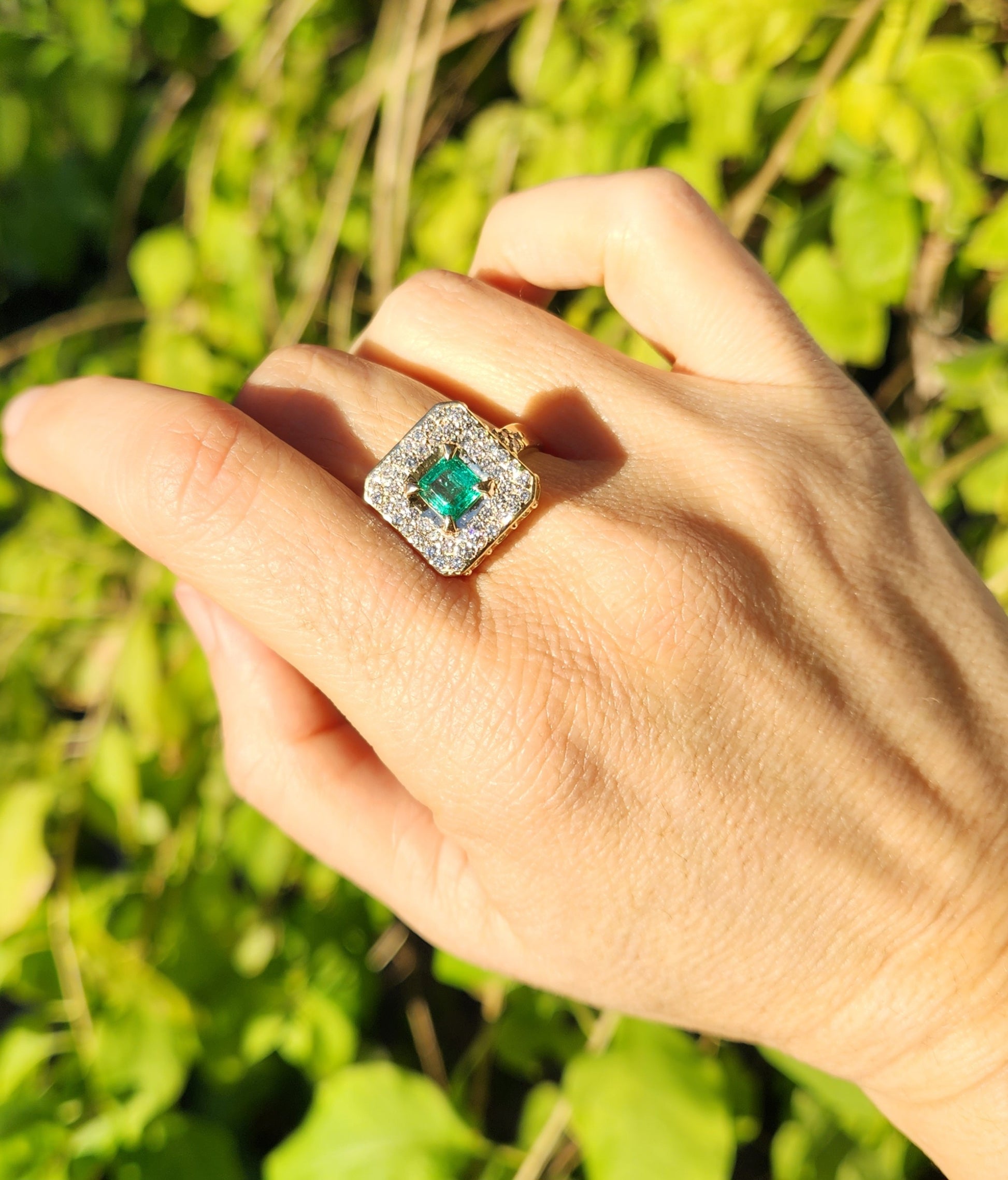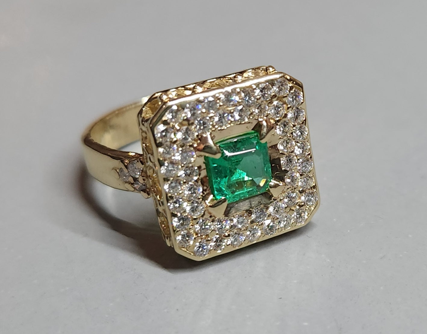 Emerald & Diamond Ring - 14k Gold Gemstone Jewelry #369