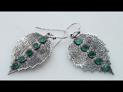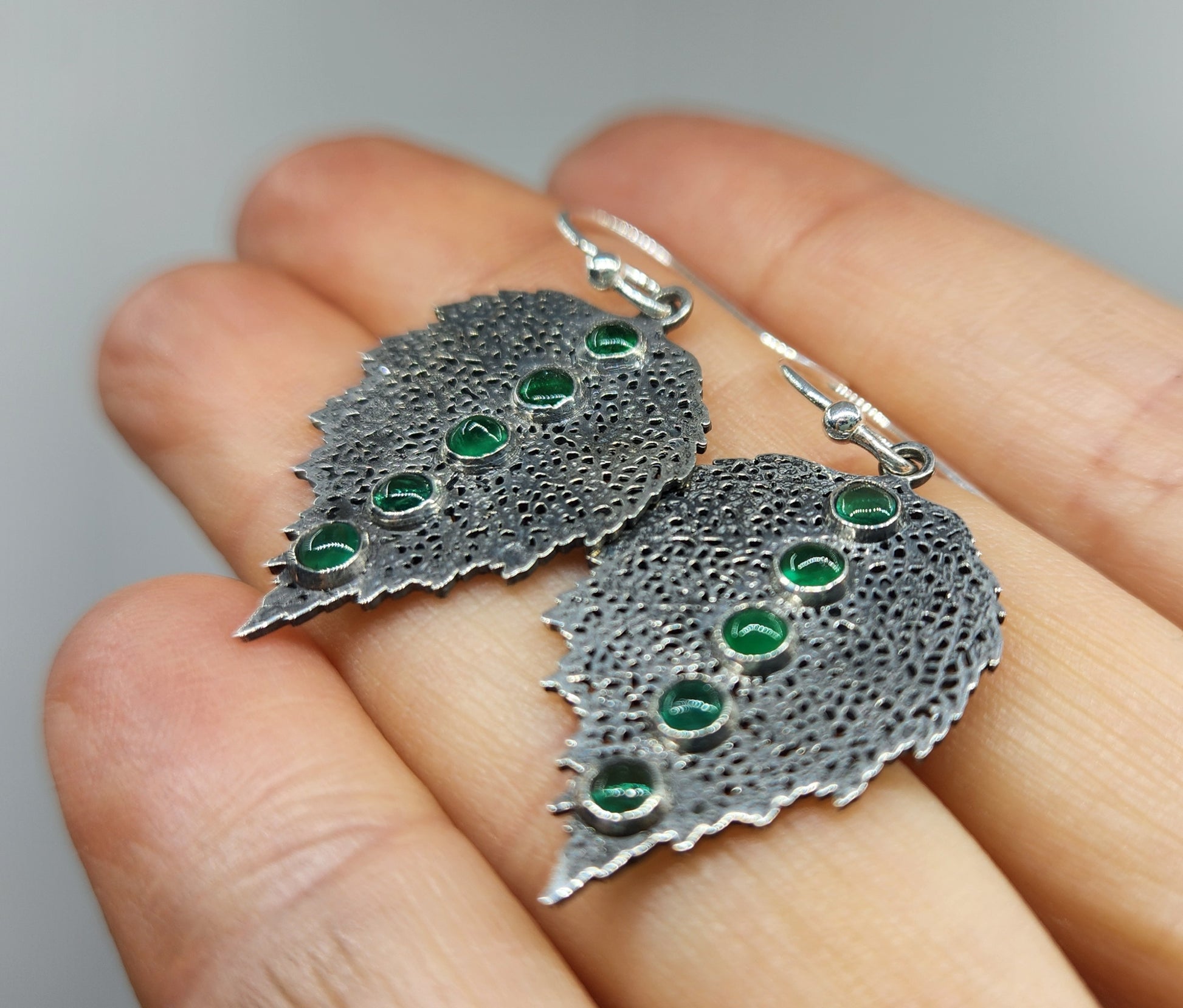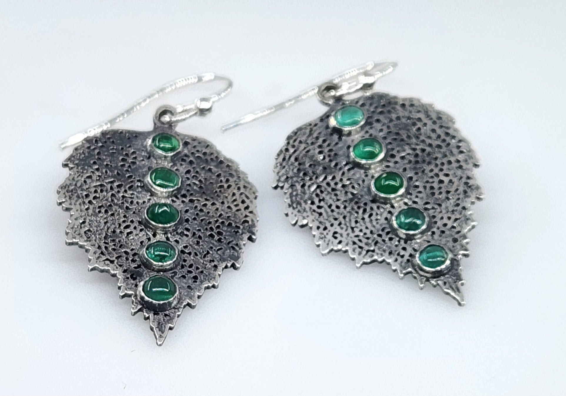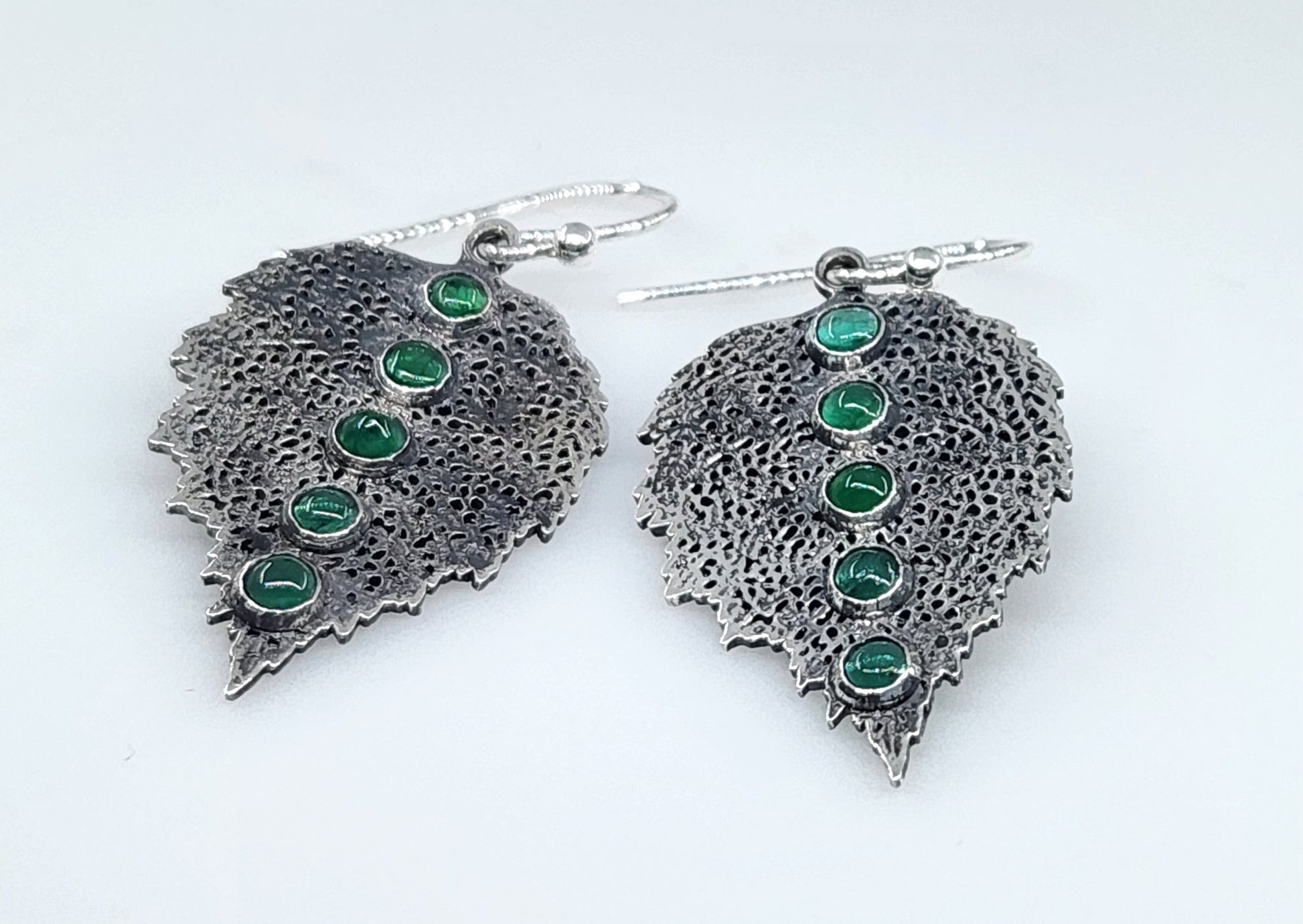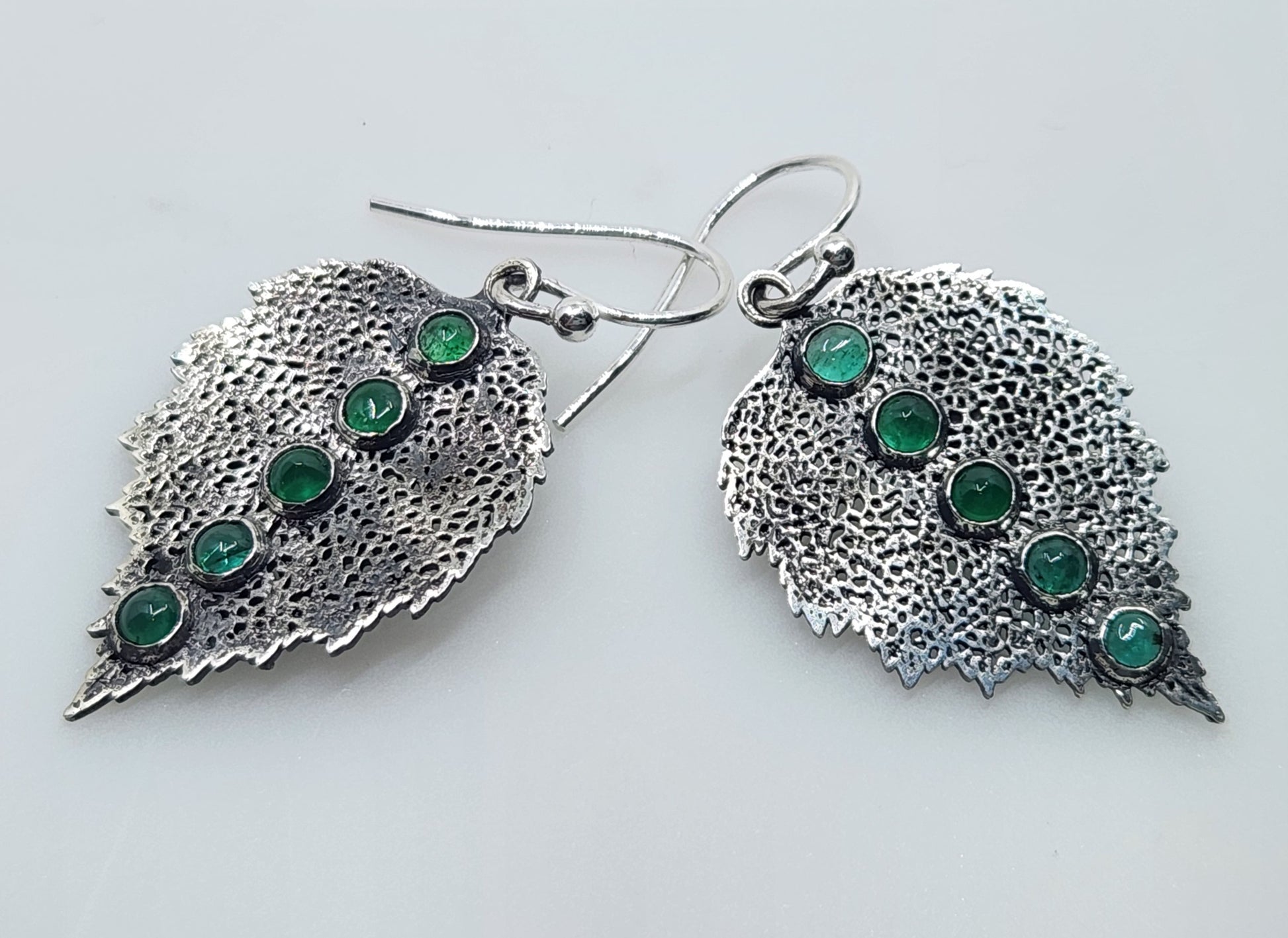 Emerald Leaf Earrings Sterling Silver Gemstone Jewelry #464