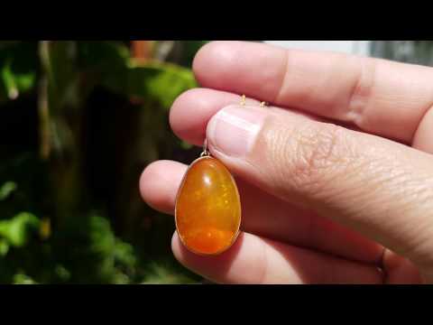 A bright orange Ethiopian Opal set in a 14k Yellow Gold Pendant. The opal has soft fire colors. For a closer look