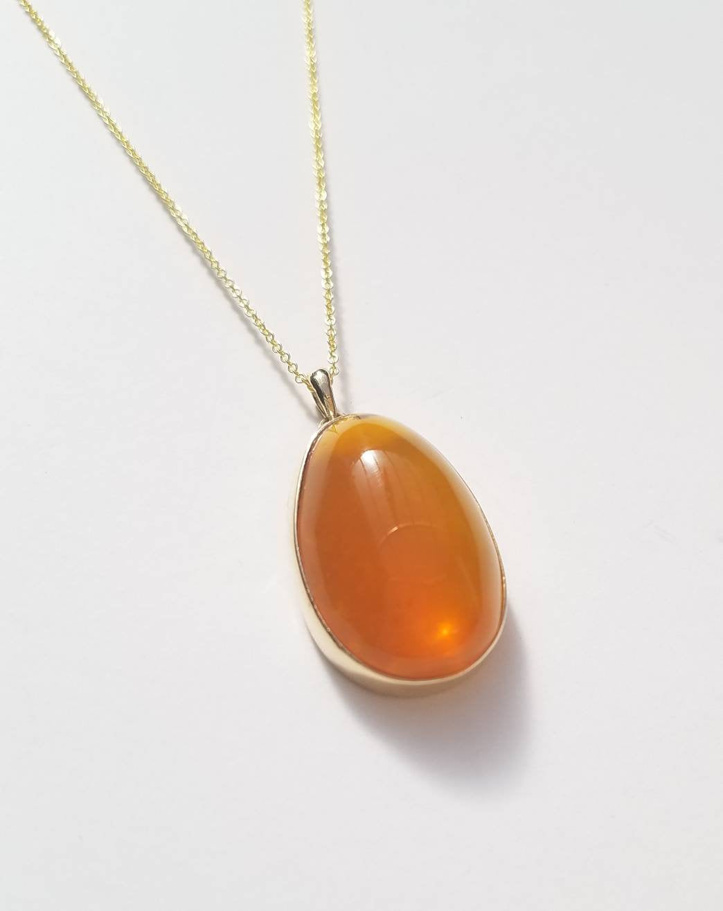 Ethiopian Orange Opal Pendant Necklace - 14k Yellow Gold #1524
