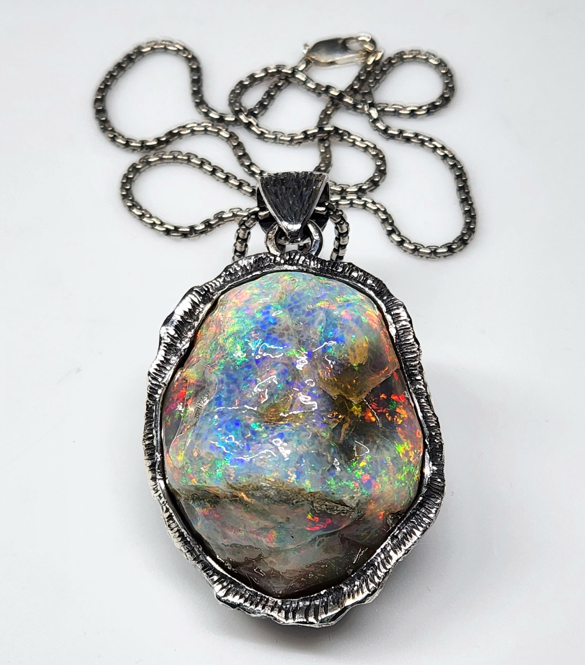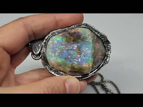 Large Natural Opal Specimen Pendant Sterling Silver #356