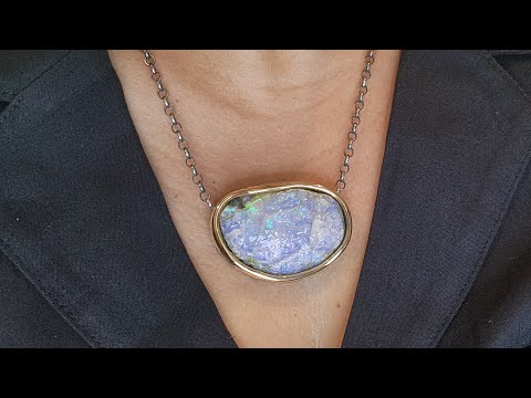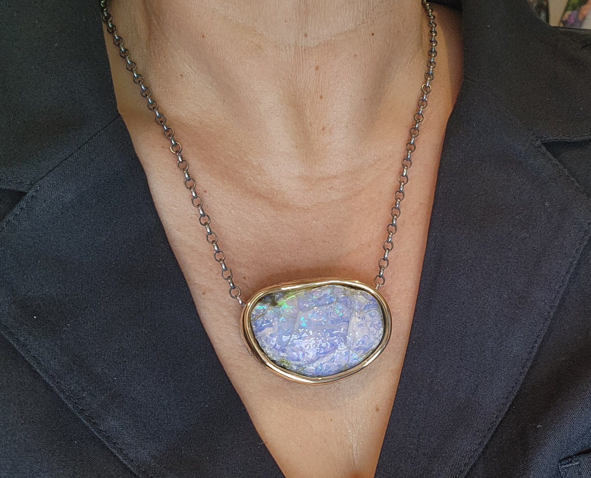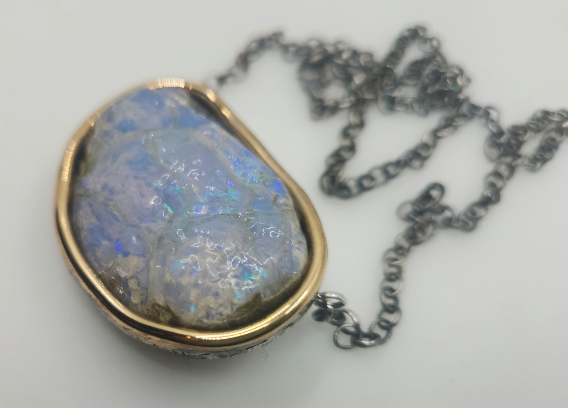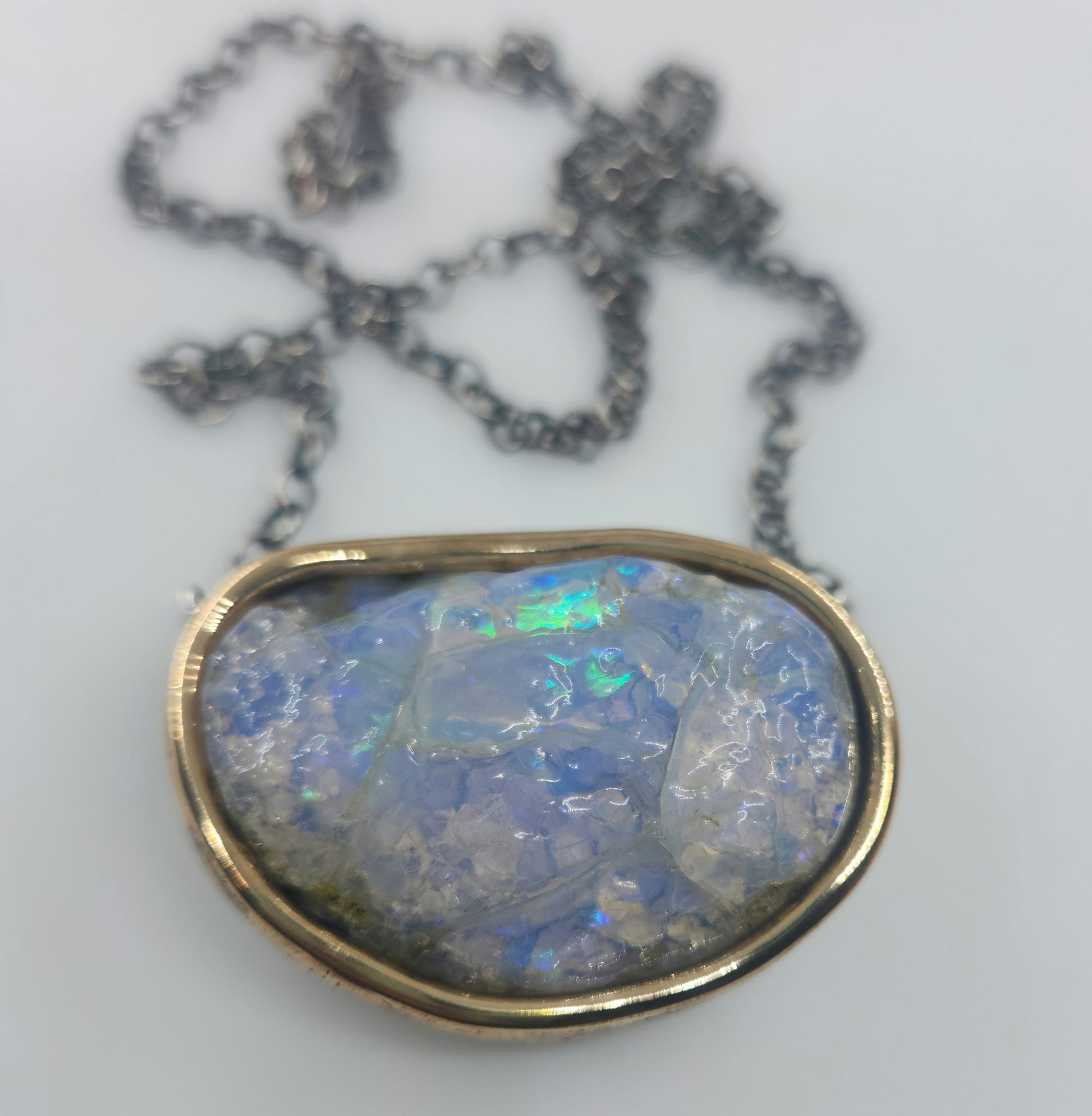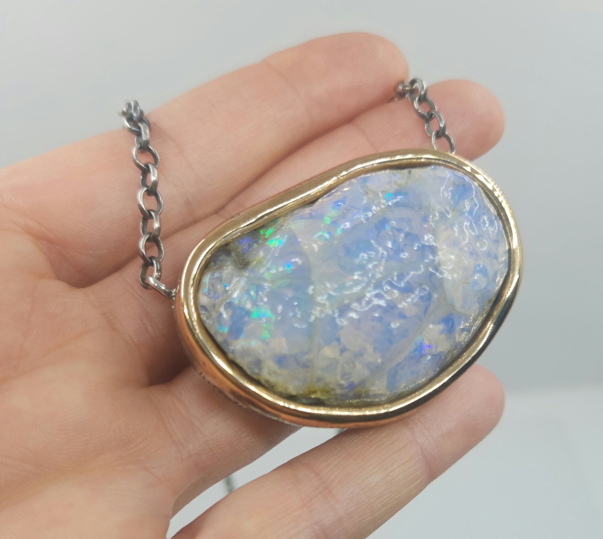 Large Natural Opal Specimen Pendant Sterling Silver Gemstone Jewelry #493