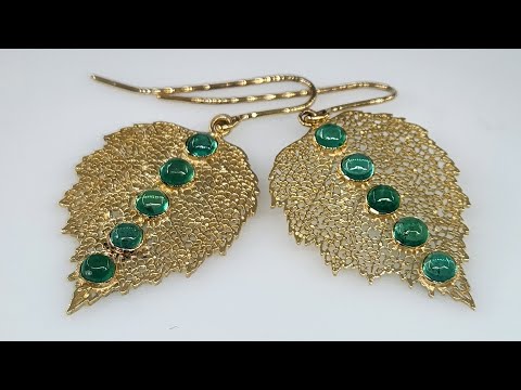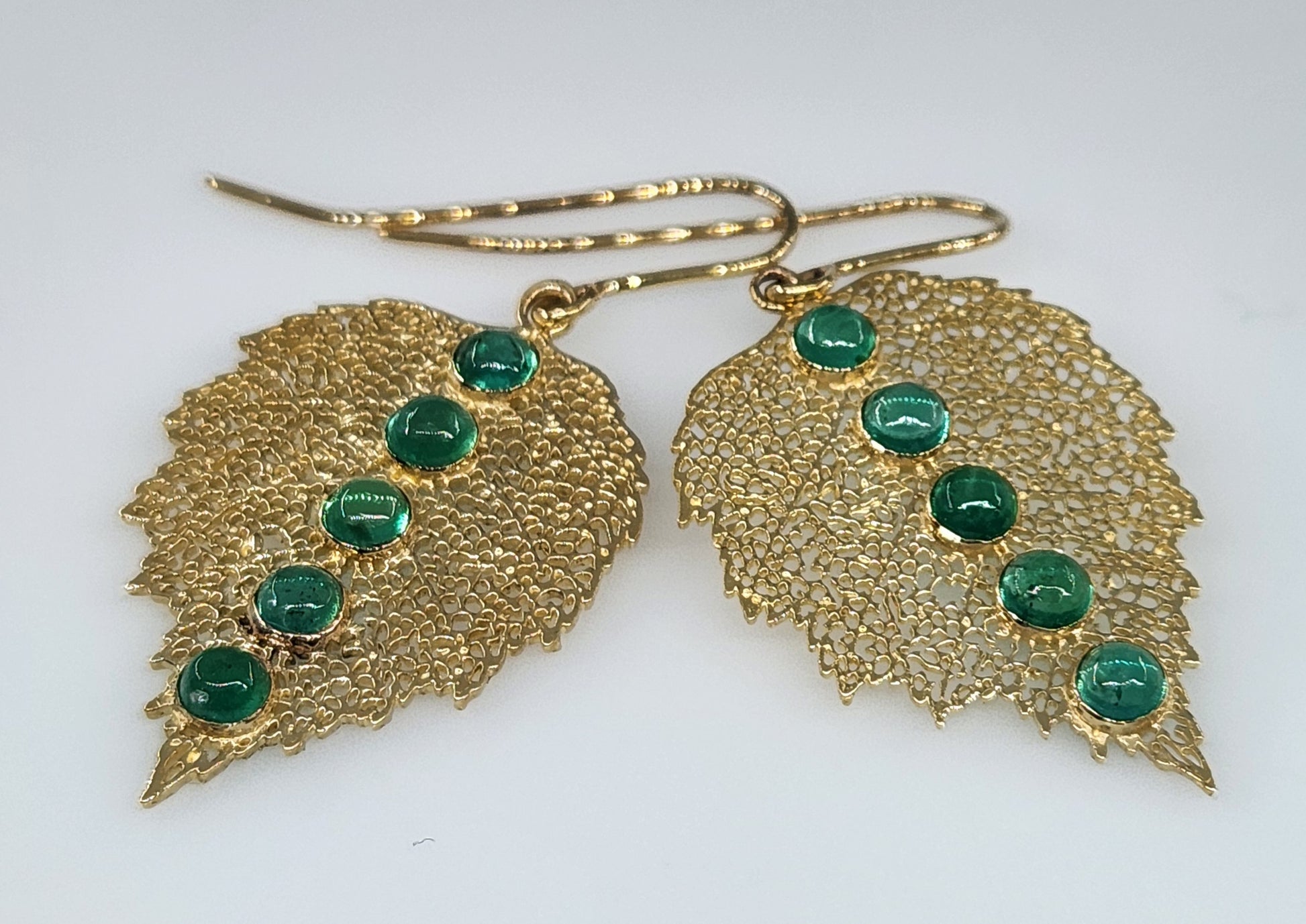 Emerald Leaf Earrings 14k Gold Gemstone Jewelry #463