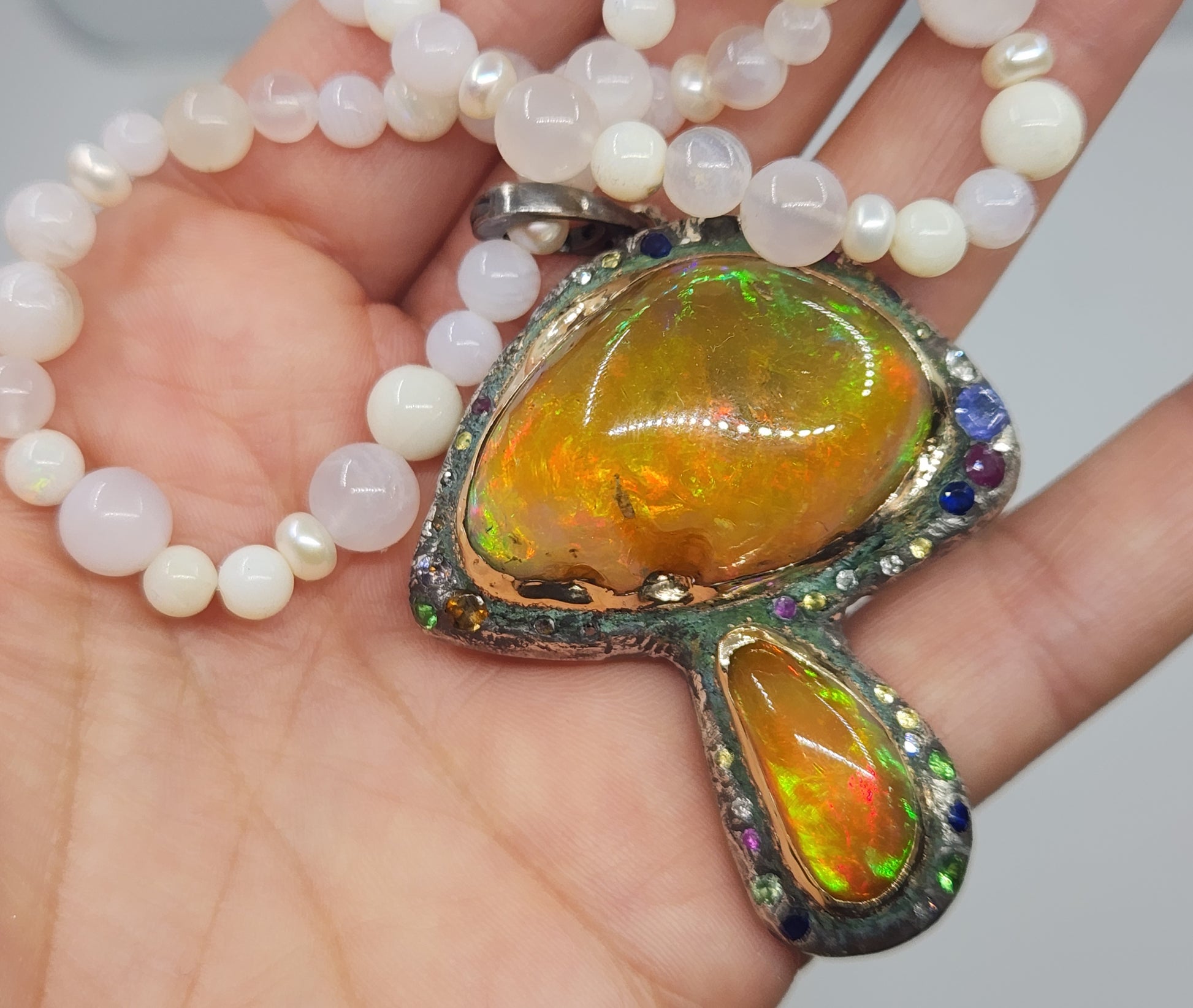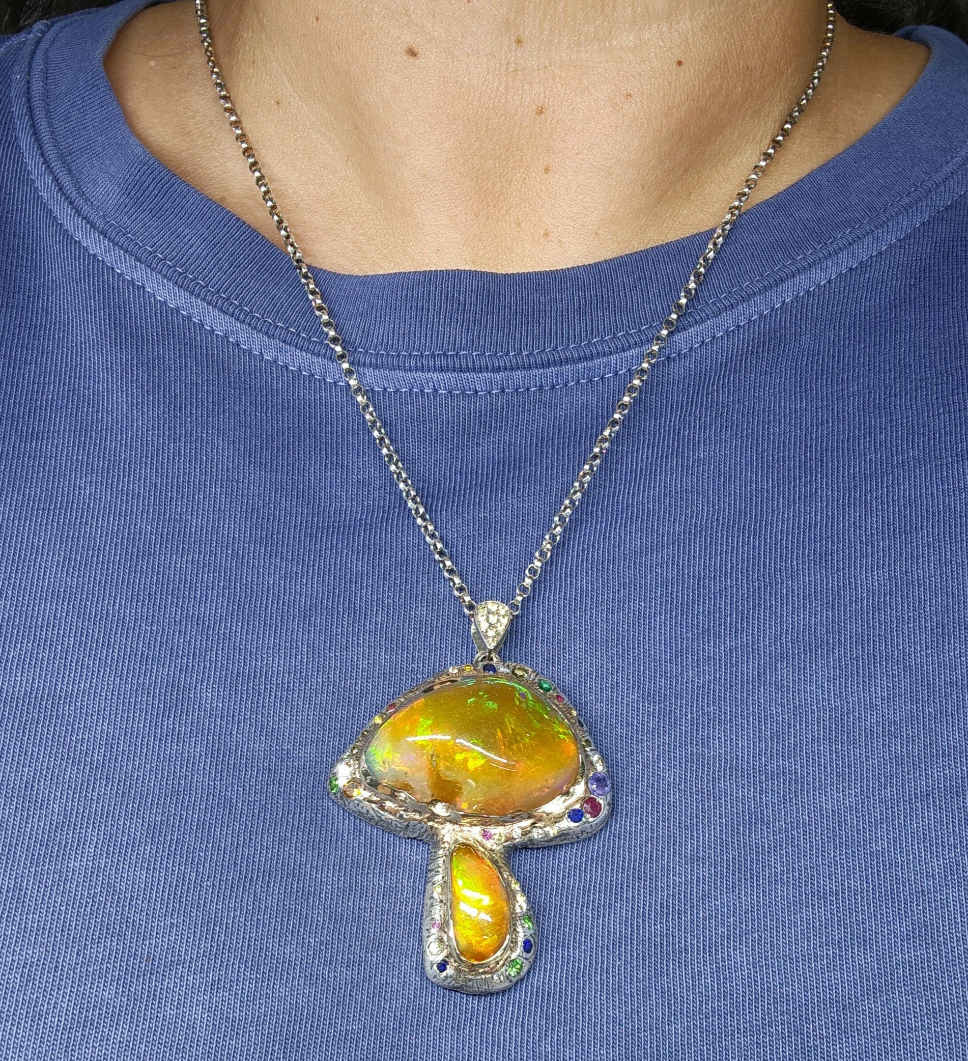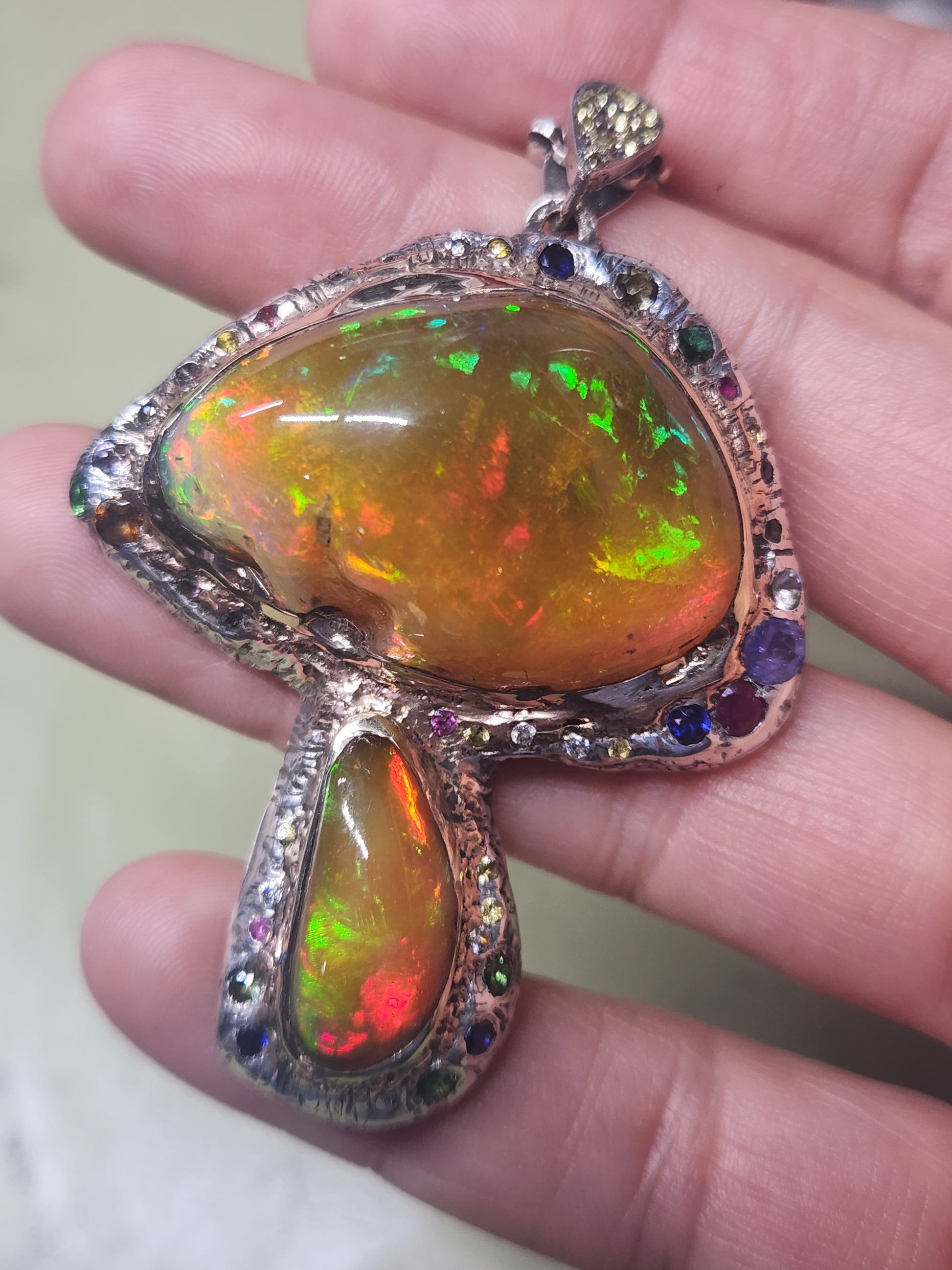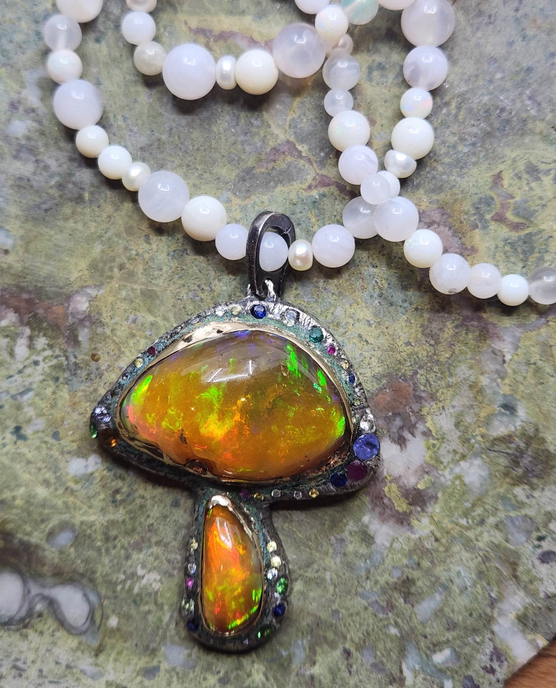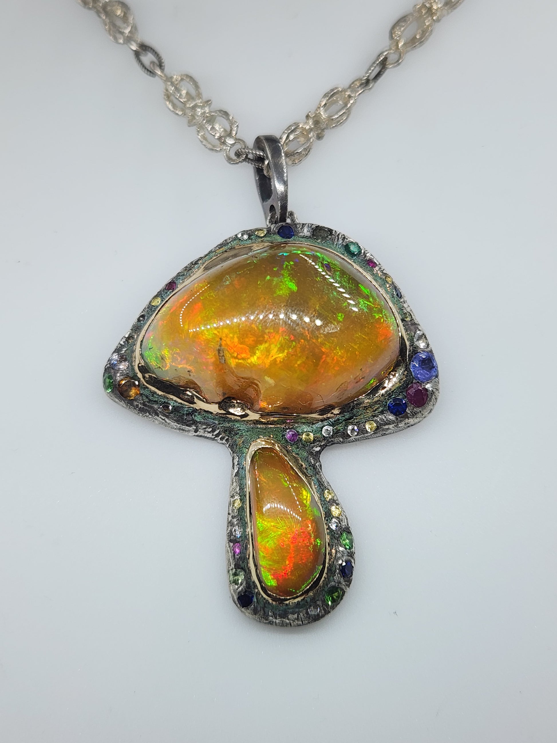 Custom Order: Mushroom Pendant - Natural Ethiopian Opal Specimen - Sterling Silver #516