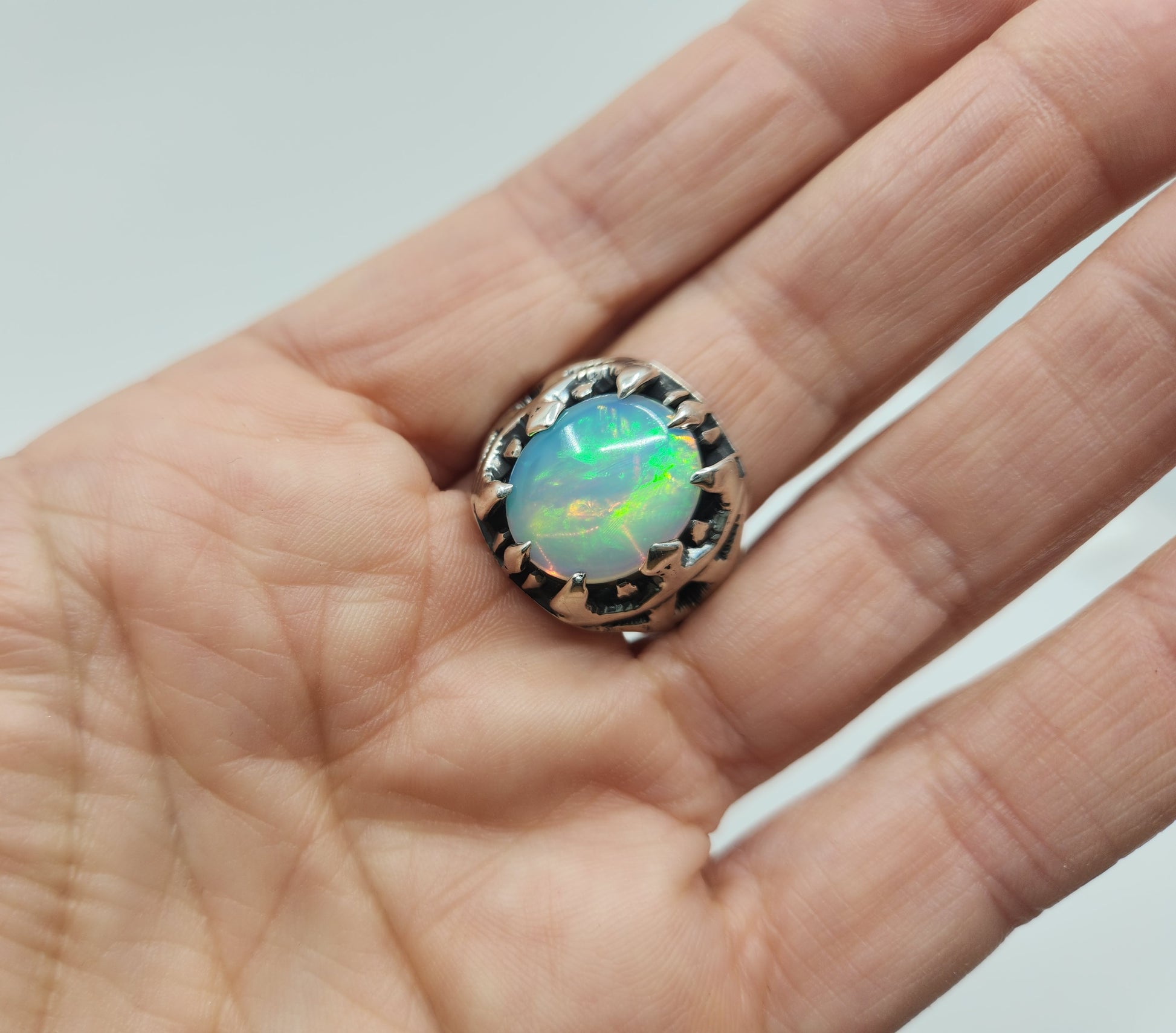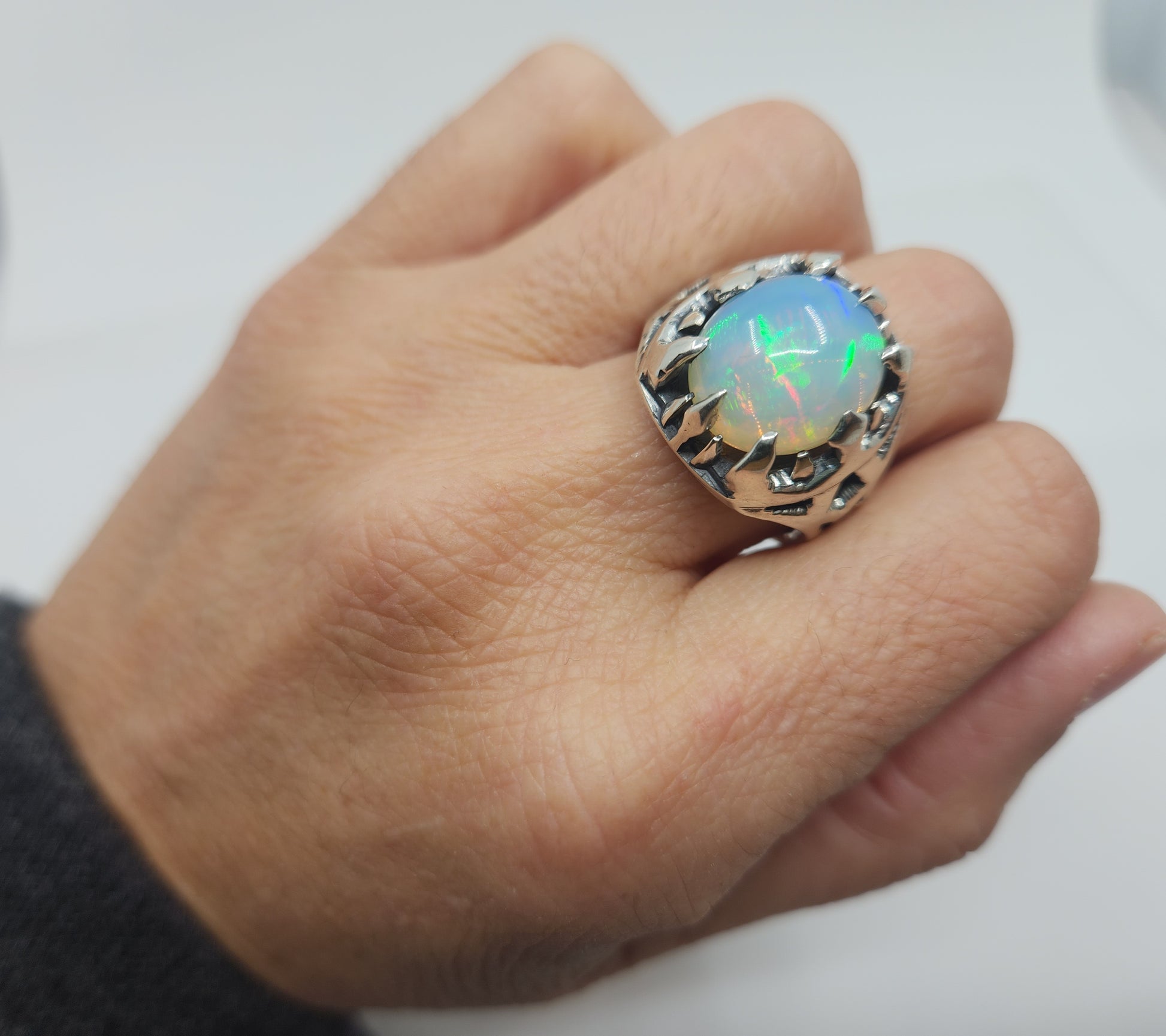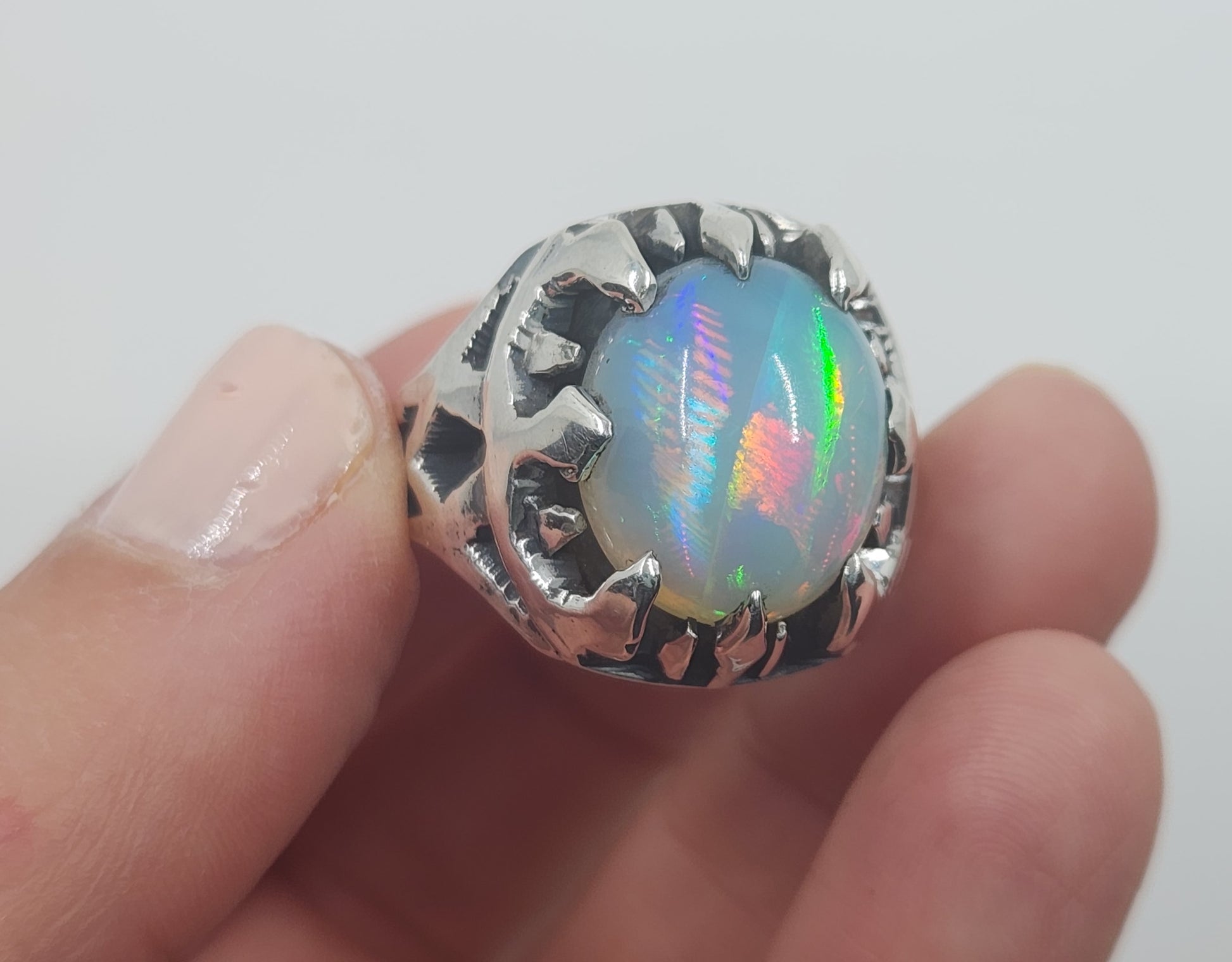 Natural Opal Sterling Silver Ring - Gemstone Jewelry #531