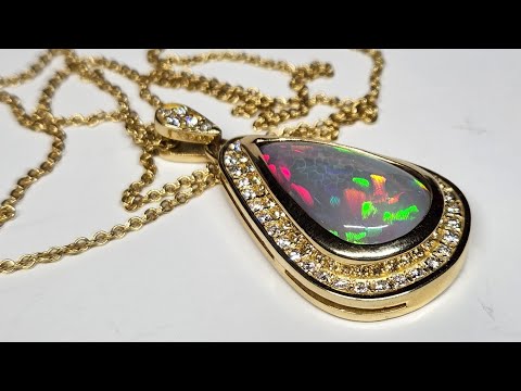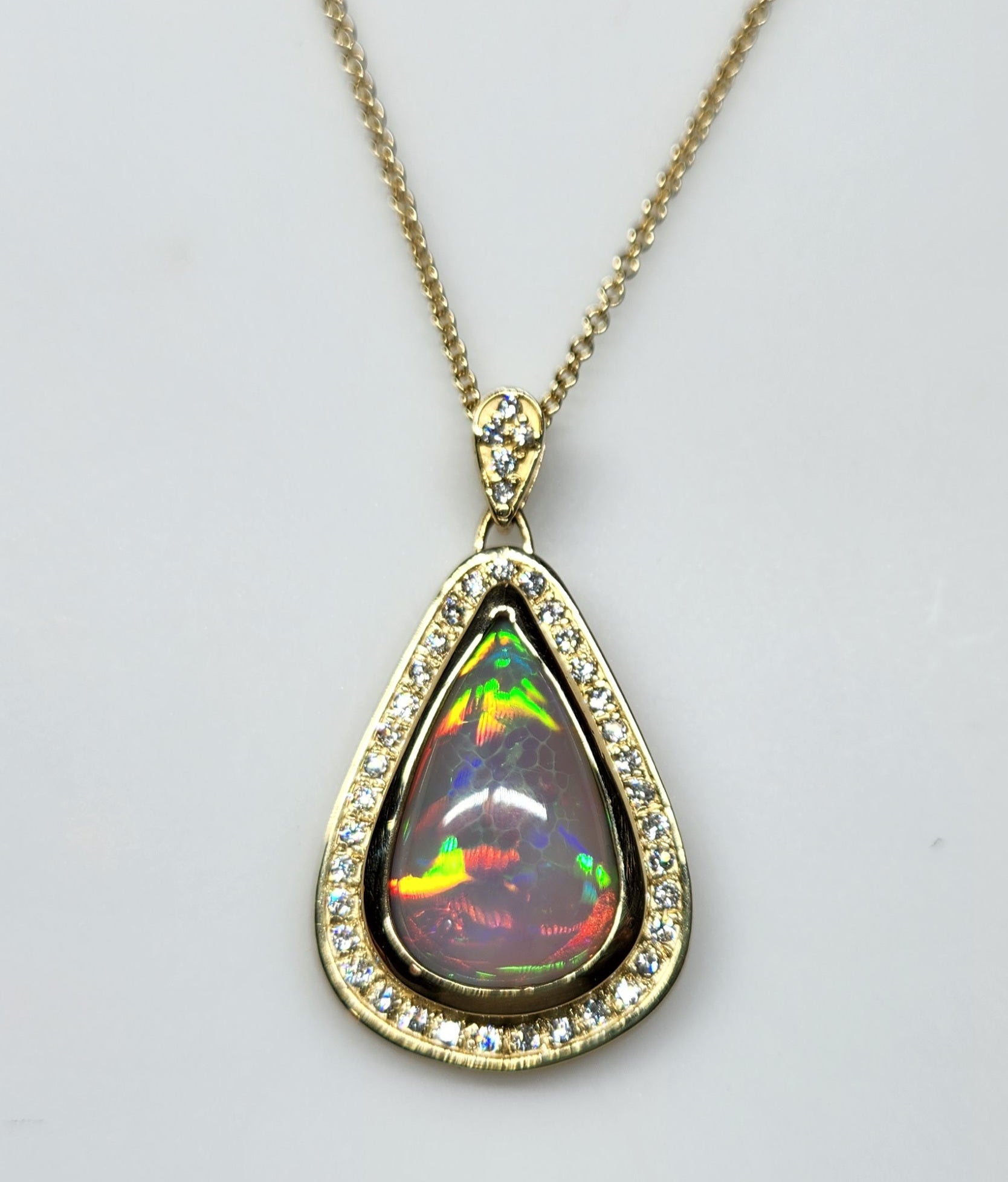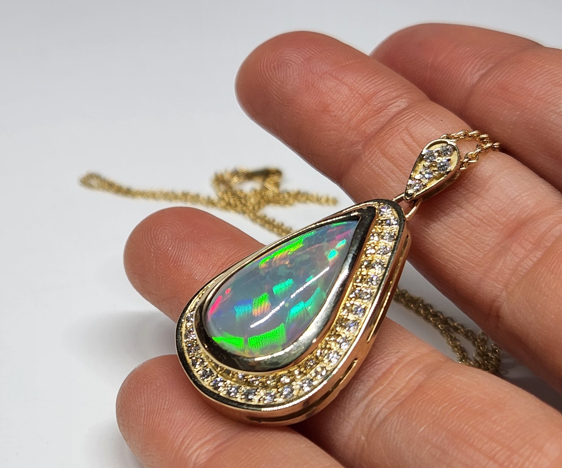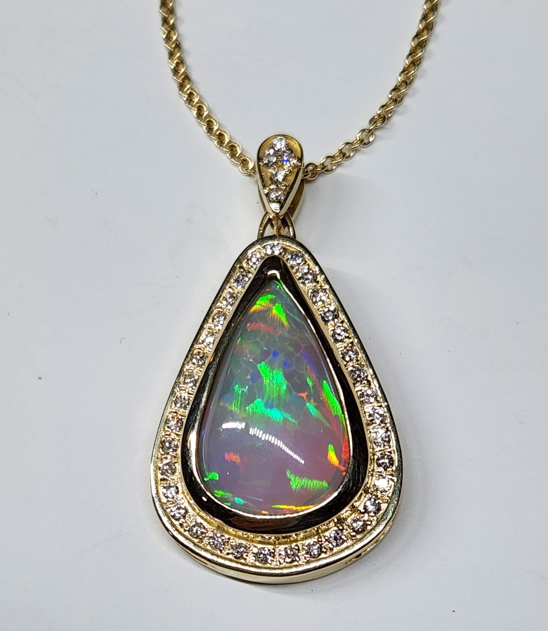 Opal & Diamond Pendant 14k Gold Necklace #363