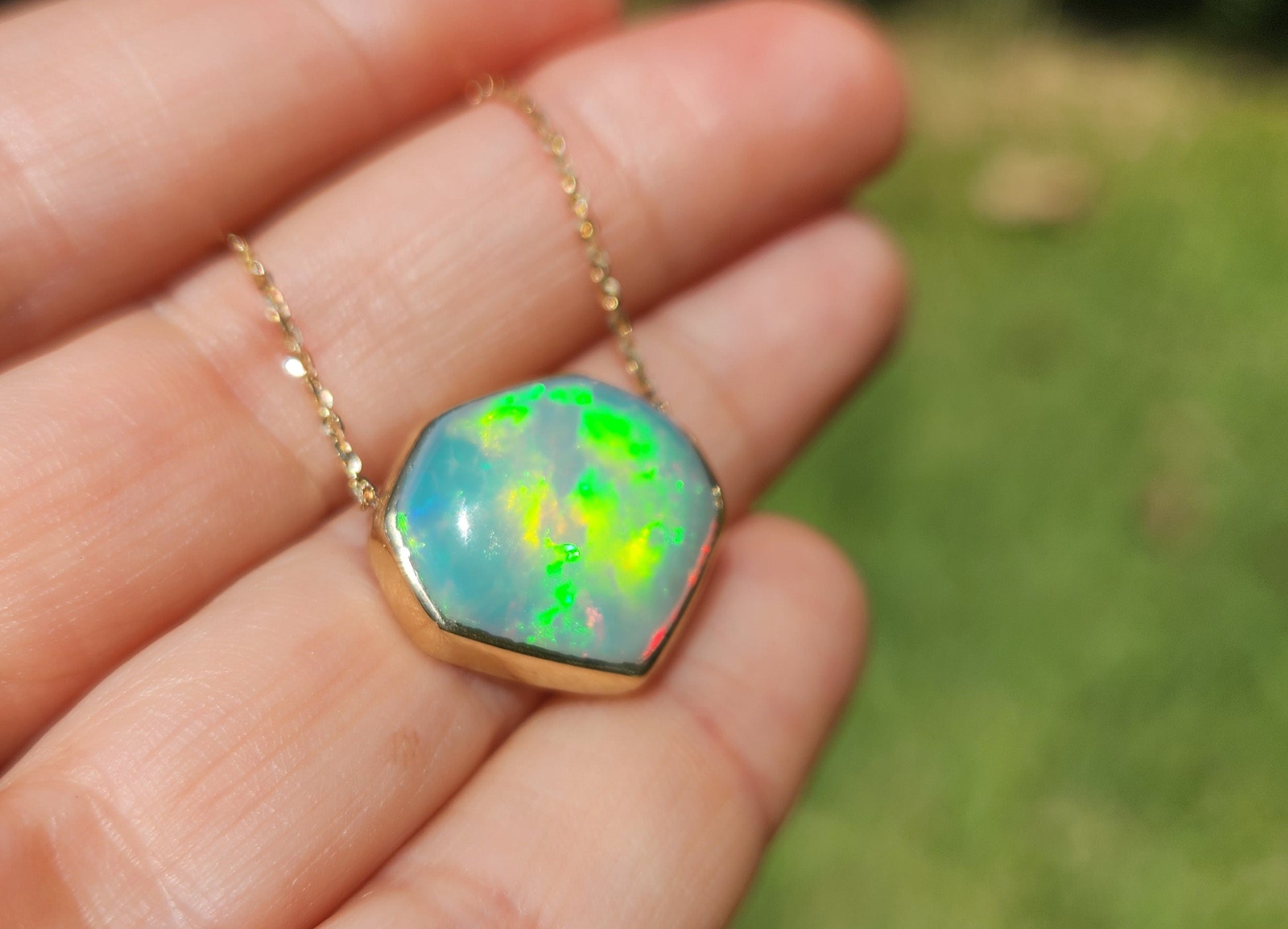 Opal Pendant 14k Yellow Gold Chain Necklace #422