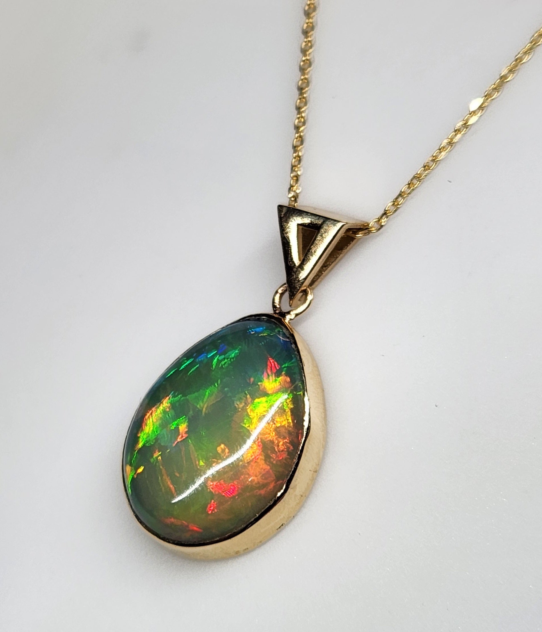 Opal Pendant 14k Yellow Gold Chain Necklace #449
