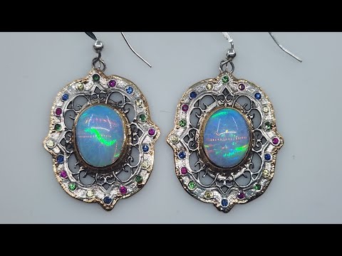 Center Gemstones: 14X10mm Ethiopian Opal cabochons