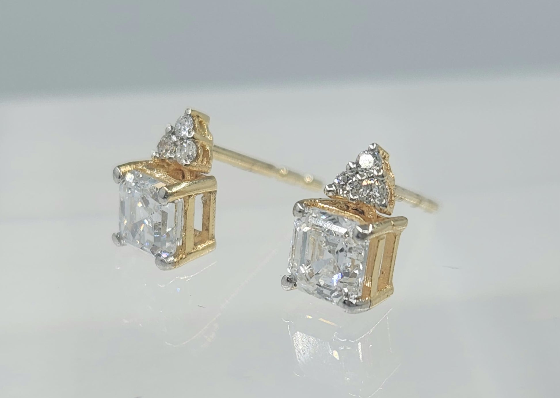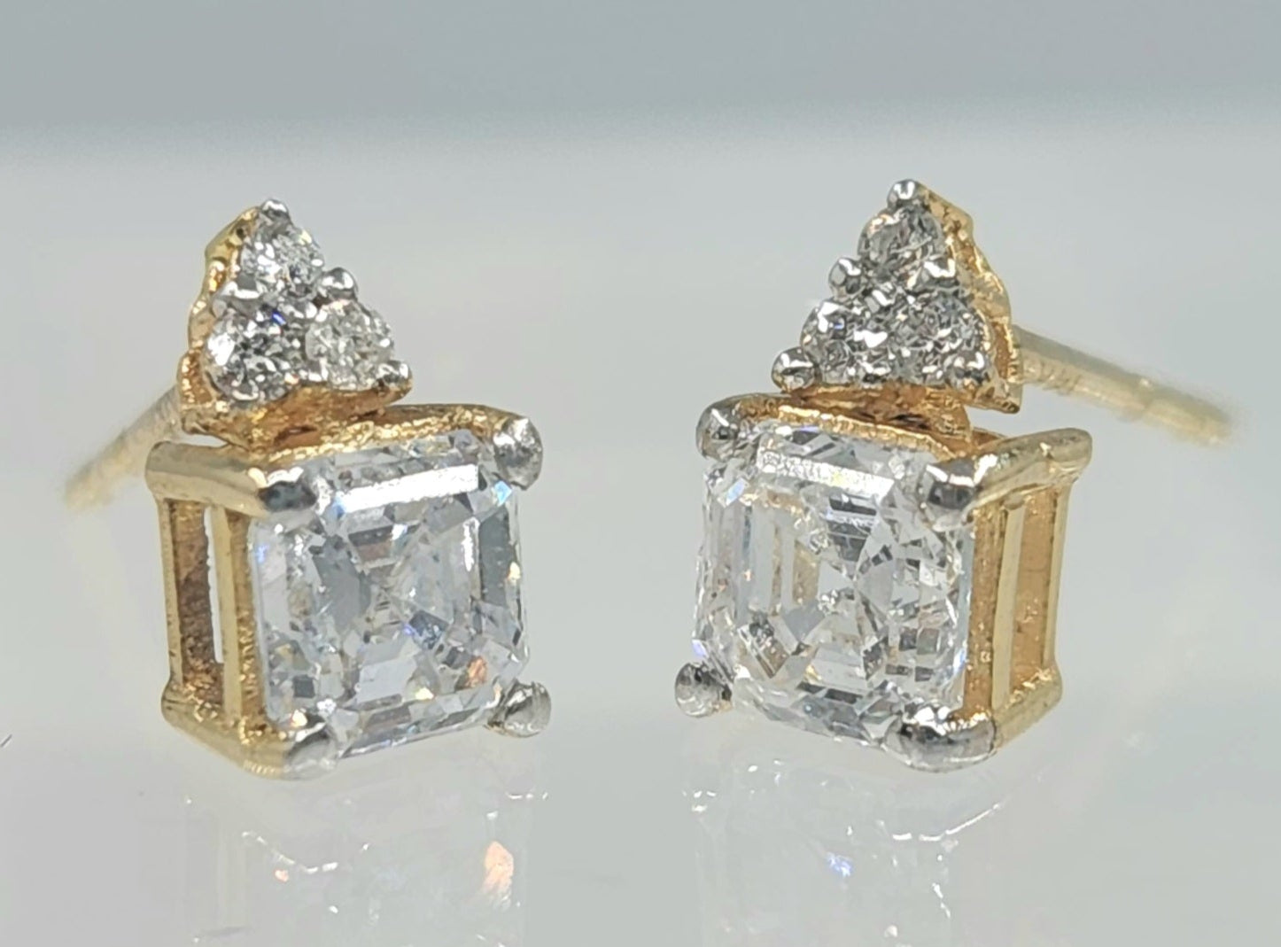 Princess Cut Diamond Earring Studs 14k Yellow Gold #551