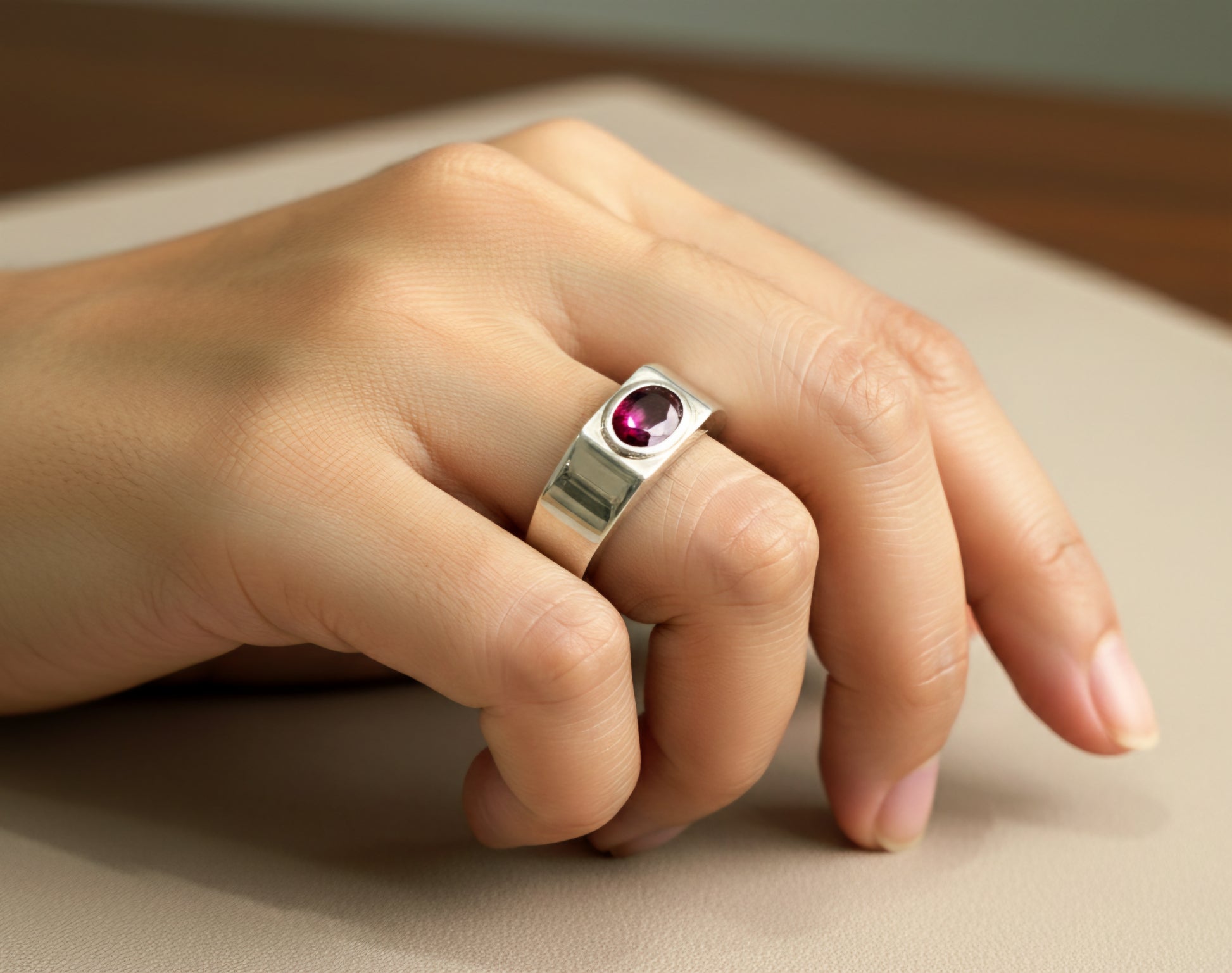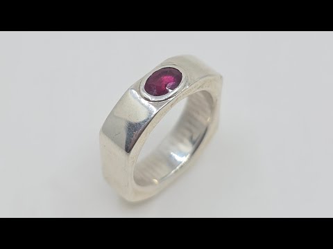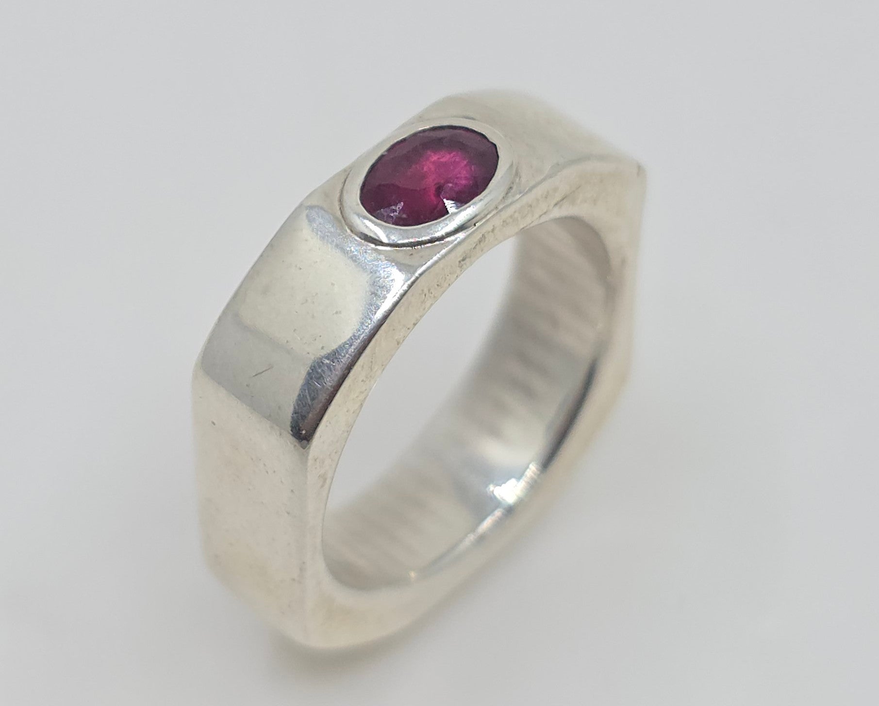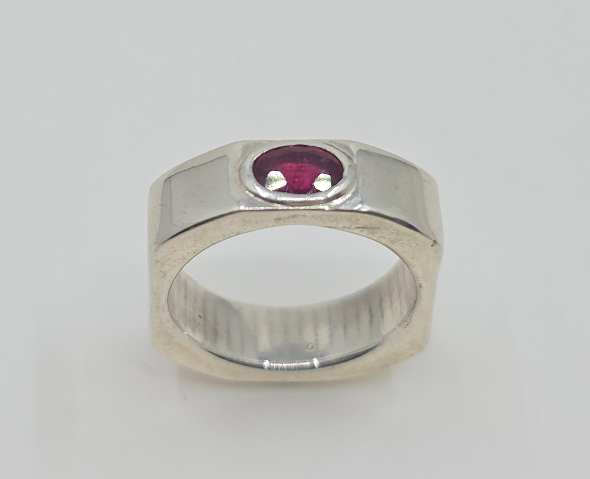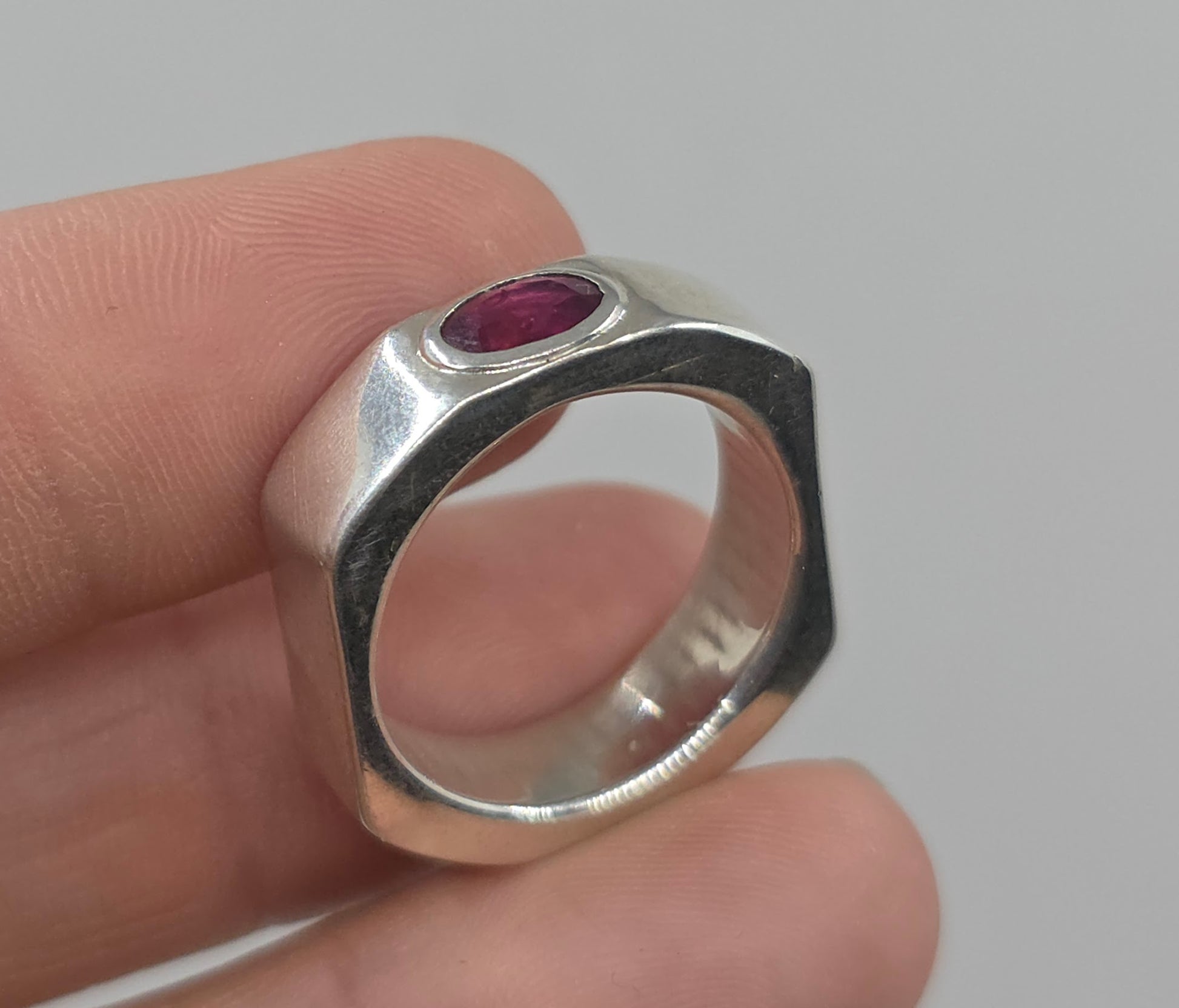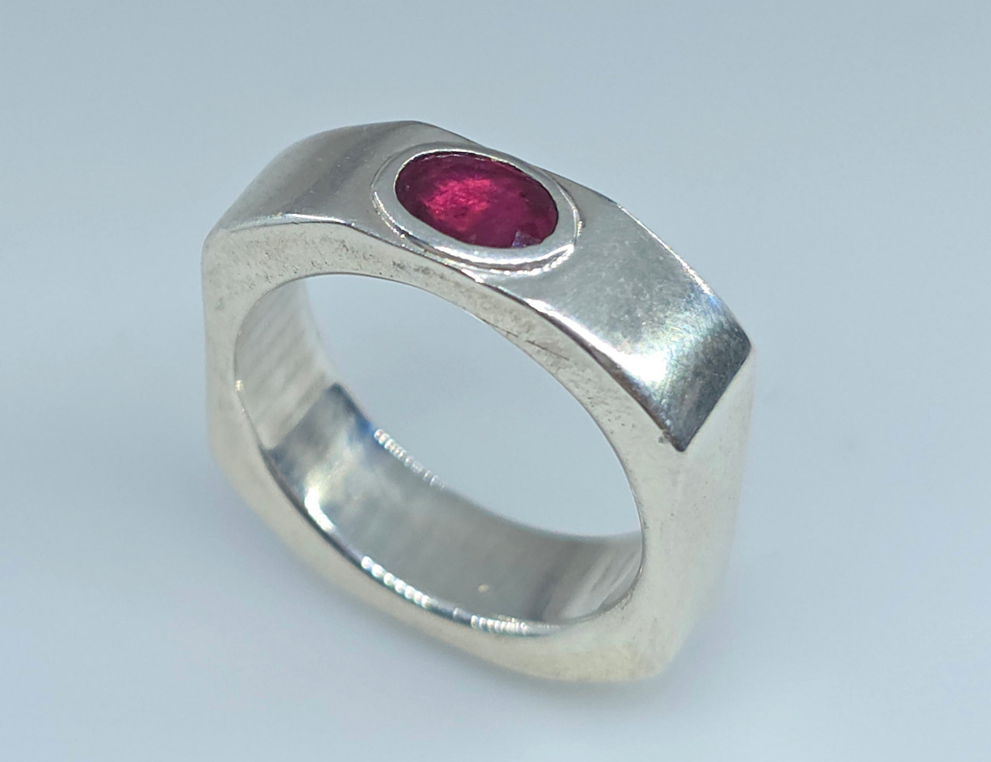 Sterling Silver Ruby Ring - Wide Solid Band - Unisex design #605