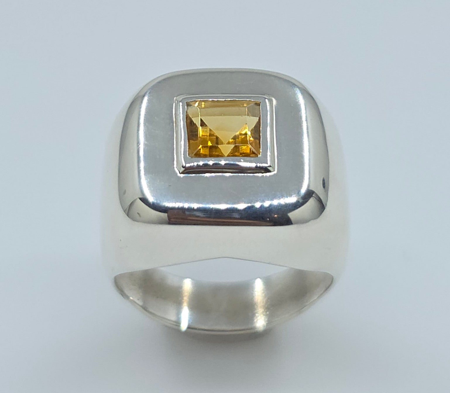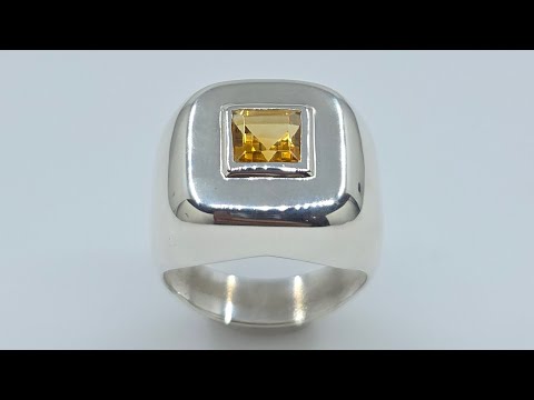 Our sterling silver cube ring with a yellow citrine gemstone.